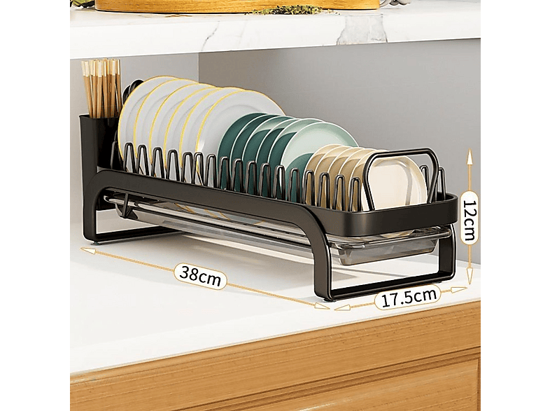 Die Abtropffläche sorgt dafür, dass das Wasser ordentlich ablaufen kann - keine Pfützen mehr im Schrank! Aus stabilem Kohlenstoffstahl gefertigt, hält der Ständer auch schwereres Geschirr problemlos aus.