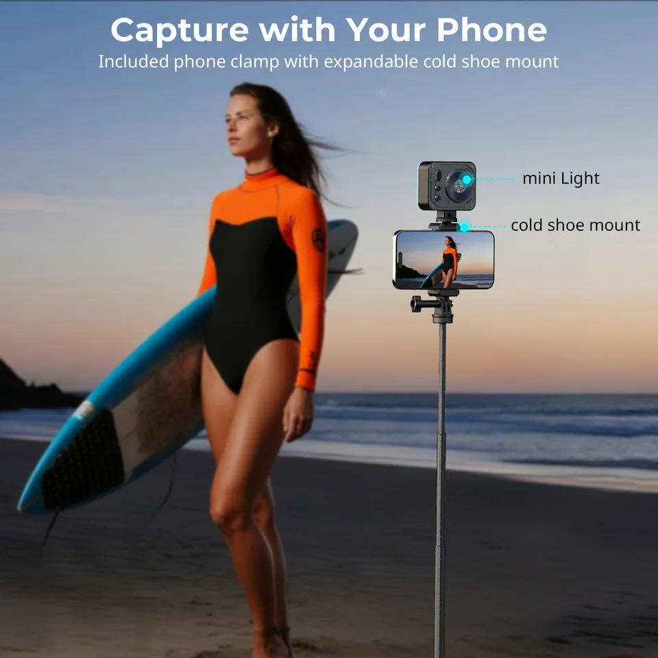 Der Allrounder für deine Aufnahmen! Dieser 2-in-1 Selfie-Stick von SMALLRIG wird zum stabilen Stativ - perfekt für Videos, Live-Streaming und Fotos. Ausziehbar von 20cm auf 95cm - ultra kompakt für unterwegs. Nur 190g leicht, aus robuster Aluminiumlegierung. Kompatibel mit GoPro Hero 13/12/11, Insta360 X5/X4, DJI Action 5 Pro und Smartphones (56-86mm). Für Insta360 wird der Stick unsichtbar entfernt - magische 360° Aufnahmen! Mit Cold-Shoe für Licht oder Mikrofon. Inklusive Handgelenkriemen für sicheren Halt. Maximale Belastung 350g - ideal für Action-Cams und Smartphones. Perfekt für YouTube, TikTok, Reisen und Abenteuer. Alles dabei: Stick, Stativ, Halterungen, Riemen - sofort loslegen!