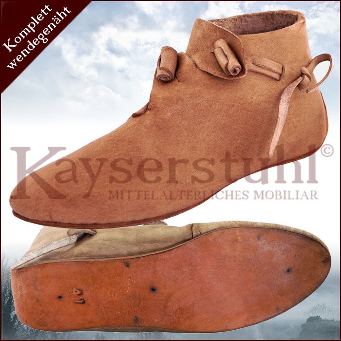Tauch ein in die Welt des Mittelalters mit diesen authentischen Wendeschuhen! Aus weichem Leder gefertigt, innen mit textiler Einlage für maximalen Komfort. Die wendegenähte Machart entspricht historischen Vorbildern aus dem Frühmittelalter. Von Größe 38 bis 48 ist für jeden Fuß etwas dabei - genau auf die Zentimeter abgestimmt. Mit seitlichem Reißverschluss für einfaches An- und Ausziehen. Perfekt für Mittelaltermärkte, LARP, historische Veranstaltungen oder einfach für alle, die den besonderen Stil lieben. Einfach mit feuchtem Tuch pflegen und lange Freude an diesen einzigartigen Schuhen haben. Dein Outfit fürs nächste Ritterturnier!