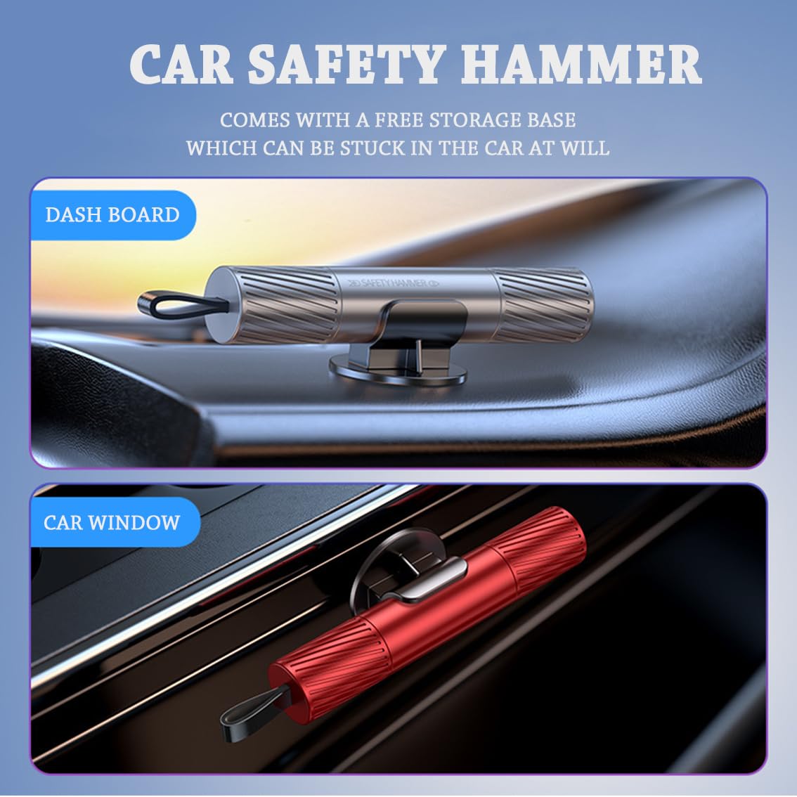 NHQZ Nothammer Auto 2 Stück - Mit Gurtschneider Für Notfälle (Schwarz+Rot)