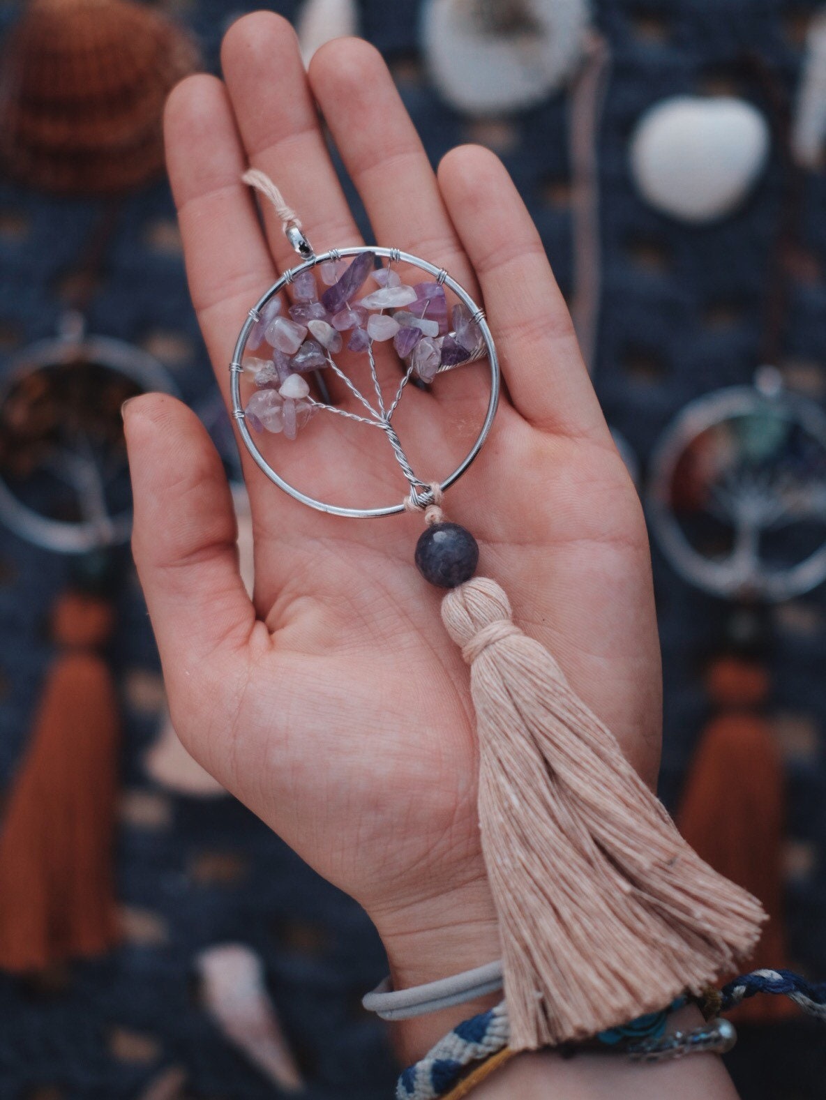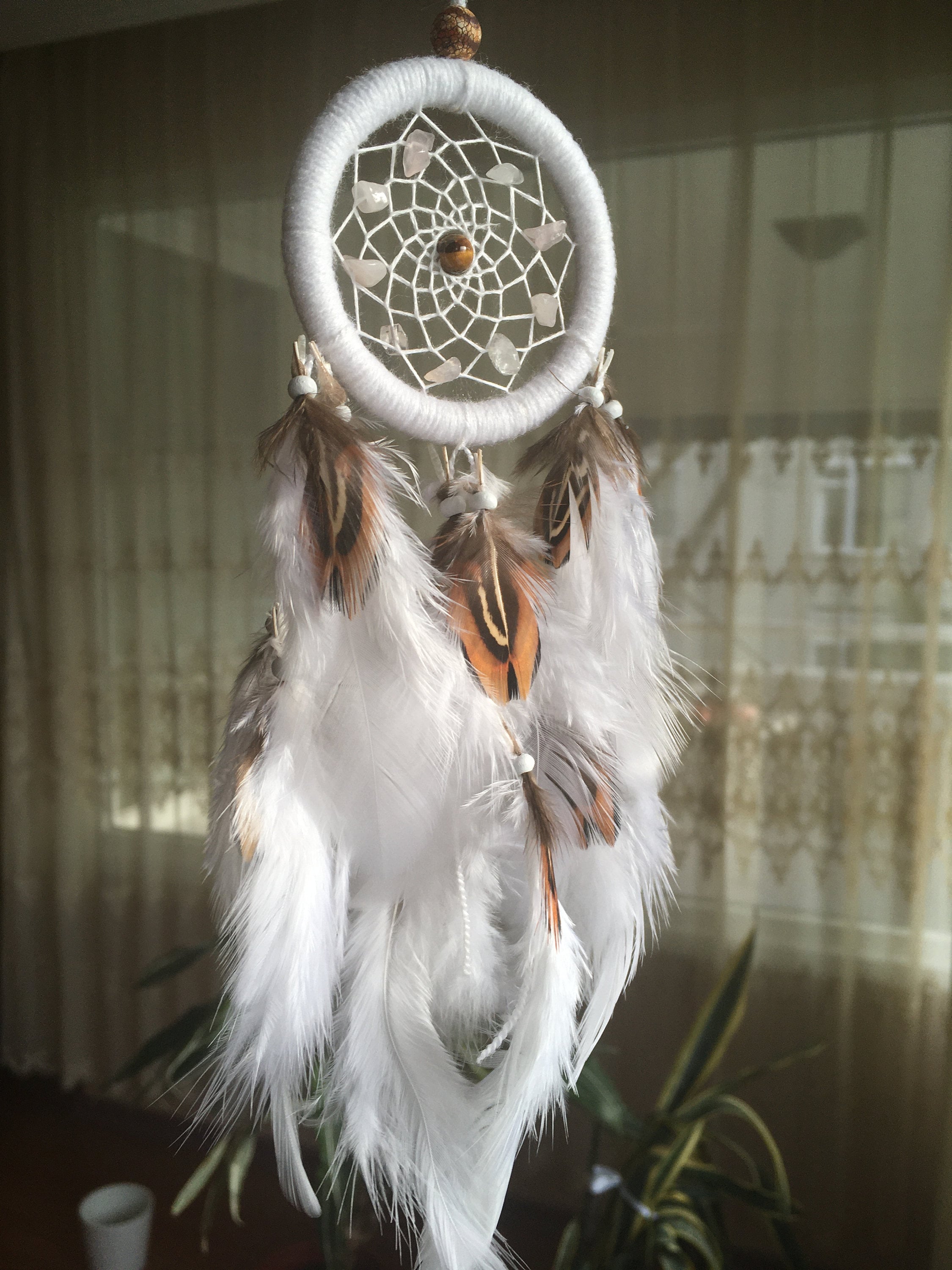 NingPower Traumfänger Auto Blau - 28cm Mit Kristallperlen Für Rückspiegel