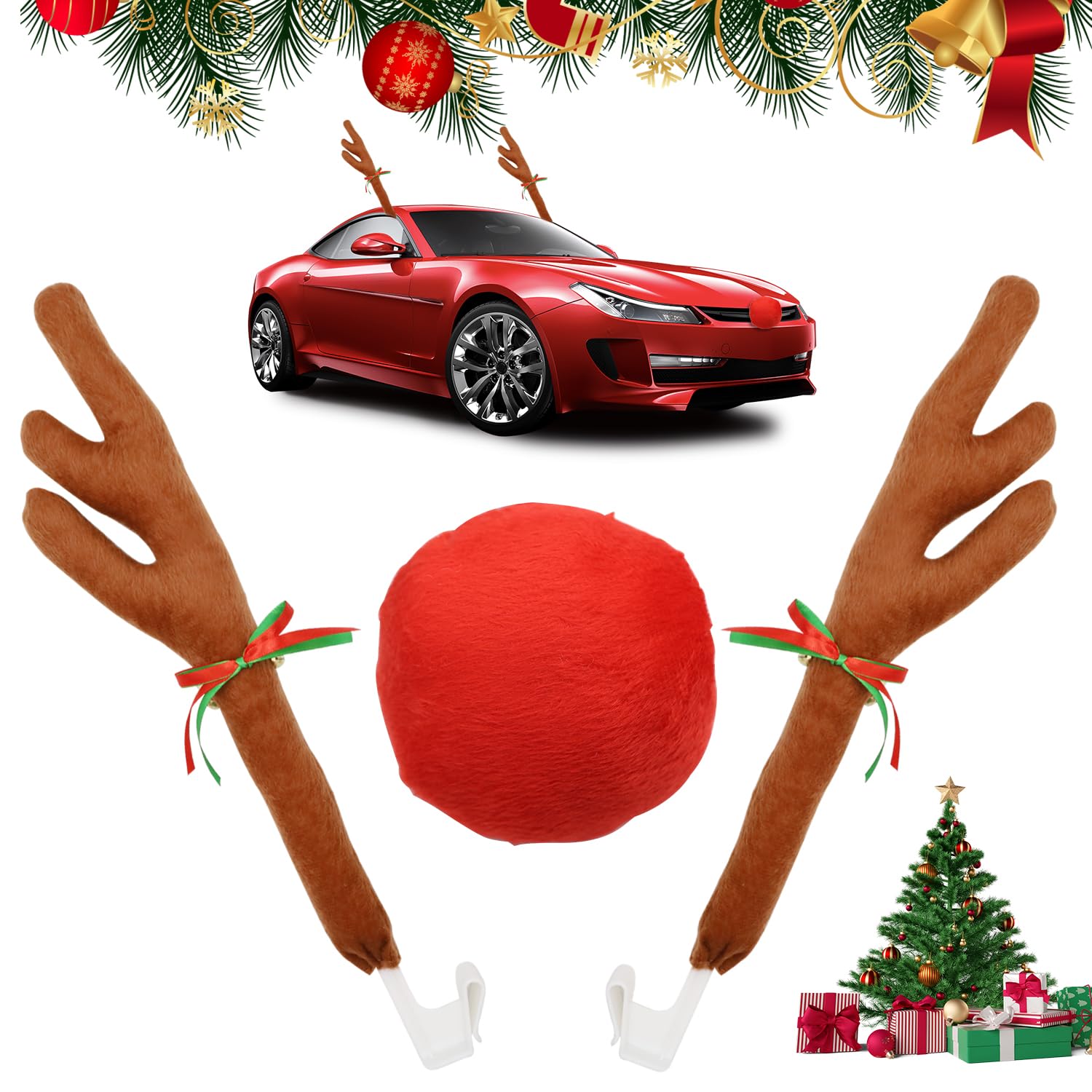 Fosoloni Rentier Auto Deko - Weihnachtsgewih Mit Roter Nase