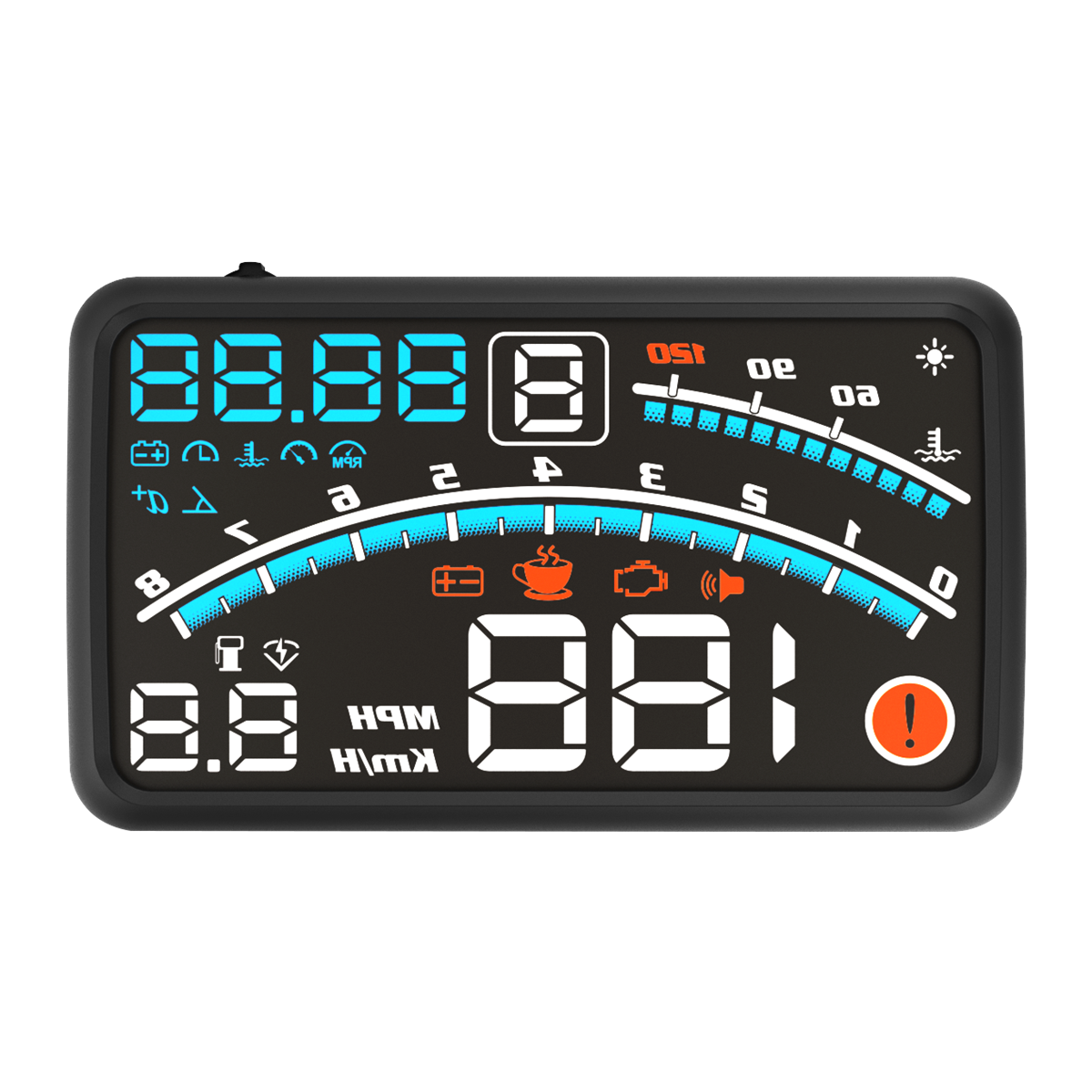 Sieh deine Geschwindigkeit ohne Blick auf das Armaturenbrett! Dieses coole Head-Up Display projiziert deine aktuelle Geschwindigkeit direkt in dein Sichtfeld. Mit GPS- und BDS-Dual-Mode für präzise Anzeige ohne Verzögerung. Einfach per USB anschließen - Plug & Play, keine komplizierte Installation. Das große digitale Display ist Tag und Nacht gut ablesbar. In KM/H oder MP/H umschaltbar. Kompatibel mit Autos, SUVs, LKWs, Bussen und Elektrorollern. Maße: 80x31x54mm, diskret und unauffällig. Aus robustem ABS-Kunststoff in schwarz. Mach deine Fahrten sicherer - behalte die Geschwindigkeit im Blick ohne die Straße aus den Augen zu lassen. Ein tolles Gadget für jeden Fahrer!
