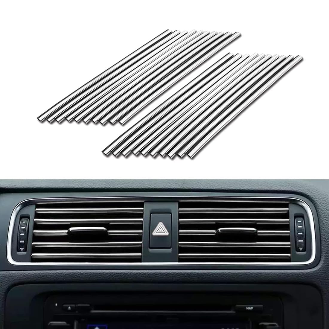 Hey, willst du deinem Auto einen individuellen Look verpassen? Diese Lüftungsschlitz-Dekoration von TPZORJX ist genau das Richtige! Im 20er-Set mit je 20cm Länge - genug für alle Lüftungsschlitze deines Autos! Aus hochwertigem PVC-Weichgummi - super elastisch, wasserdicht und korrosionsbeständig! Einfach zu montieren: Maß nehmen, zuschneiden und in die Lüftungslamellen einklicken - fertig! Erhältlich in verschiedenen Farben - hier die silberne Variante für einen edlen Look! Passt für die meisten Autos mit geraden Luftauslassgittern (nicht für gebogene oder runde)! Stell dir vor: Dein Auto-Innenraum sieht plötzlich viel hochwertiger und persönlicher aus! Zeig deinen individuellen Style und mach dein Fahrzeug zu etwas Besonderem! Auch super zum Teilen mit Freunden oder Familienmitgliedern! Hol dir dieses günstige Upgrade und verleihe deinem Auto diesen besonderen Finish!