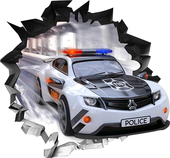 3D Polizei Auto Wandtattoo - Wandaufkleber Mit 3D Effekt Für Wohnzimmer, Schlafzimmer & Kinderzimmer