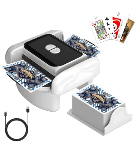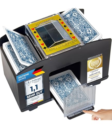 Schluss mit mühsamem Kartenmischen! Diese elektrische Kartenmischmaschine von vonsera erledigt die Arbeit für dich - schnell, gründlich und absolut fair. Mischt 1-4 Kartendecks in wenigen Sekunden durch. Aus robustem ABS-Kunststoff gebaut, hält sie auch intensivem Gebrauch stand. Der intuitive Touchscreen macht die Bedienung supereinfach. Besonders praktisch: Der leise Motor stört nicht bei gemütlichen Spielabenden. Perfekt für Poker, UNO, Blackjack und viele andere Kartenspiele. Läuft mit 4 AA-Batterien (nicht im Lieferumfang) - ideal also auch für unterwegs. Ob für Spieleabende mit Freunden, Familienfeiern oder sogar Turniere - dieser Kartenmischer sorgt für professionelle Ergebnisse. Mach deine Spielenächte noch entspannter!