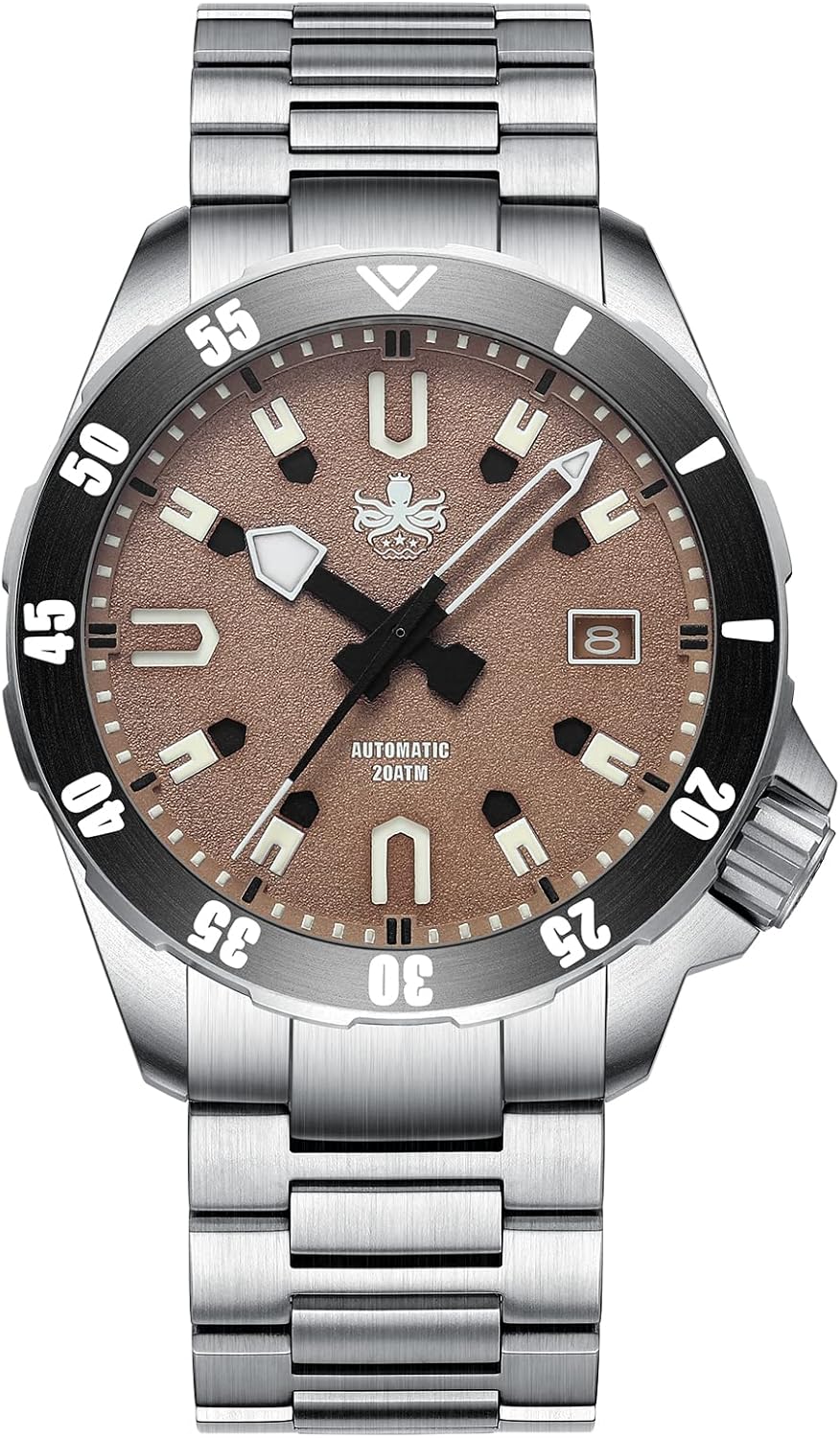 Das kratzfeste Saphirglas und das 316L Edelstahlgehäuse (41mm Durchmesser) sorgen für Langlebigkeit und Stil. Die coole Oktopus-Gravur auf der Rückseite verleiht ihr maritimen Charme. Das Edelstahl-Armband mit Faltschließe sitzt perfekt und bequem.