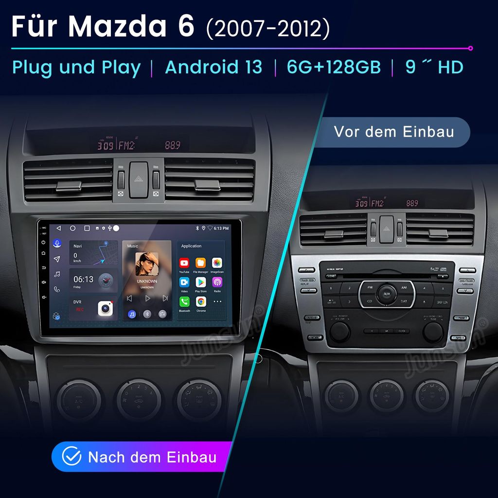 Upgrade dein Mazda 6 Radio! Dieses Android 14 Autoradio mit 12.3 Zoll Touchscreen ist der absolute Hammer. Passt perfekt für Mazda 6 Modelle 2017-2019. Mit 8GB RAM und 256GB ROM läuft es super flüssig. Integriertes CarPlay und Android Auto, 4G LTE, WLAN, Bluetooth 5.0 - einfach alles dabei! Der HD-IPS-Bildschirm mit 1024x600 Pixel ist super klar. DSP für perfekten Sound, Split-Screen für Multitasking und Rückfahrkamera-Unterstützung. Einfach einbauen und von modernster Technik profitieren. Damit wird jede Fahrt zum Erlebnis!