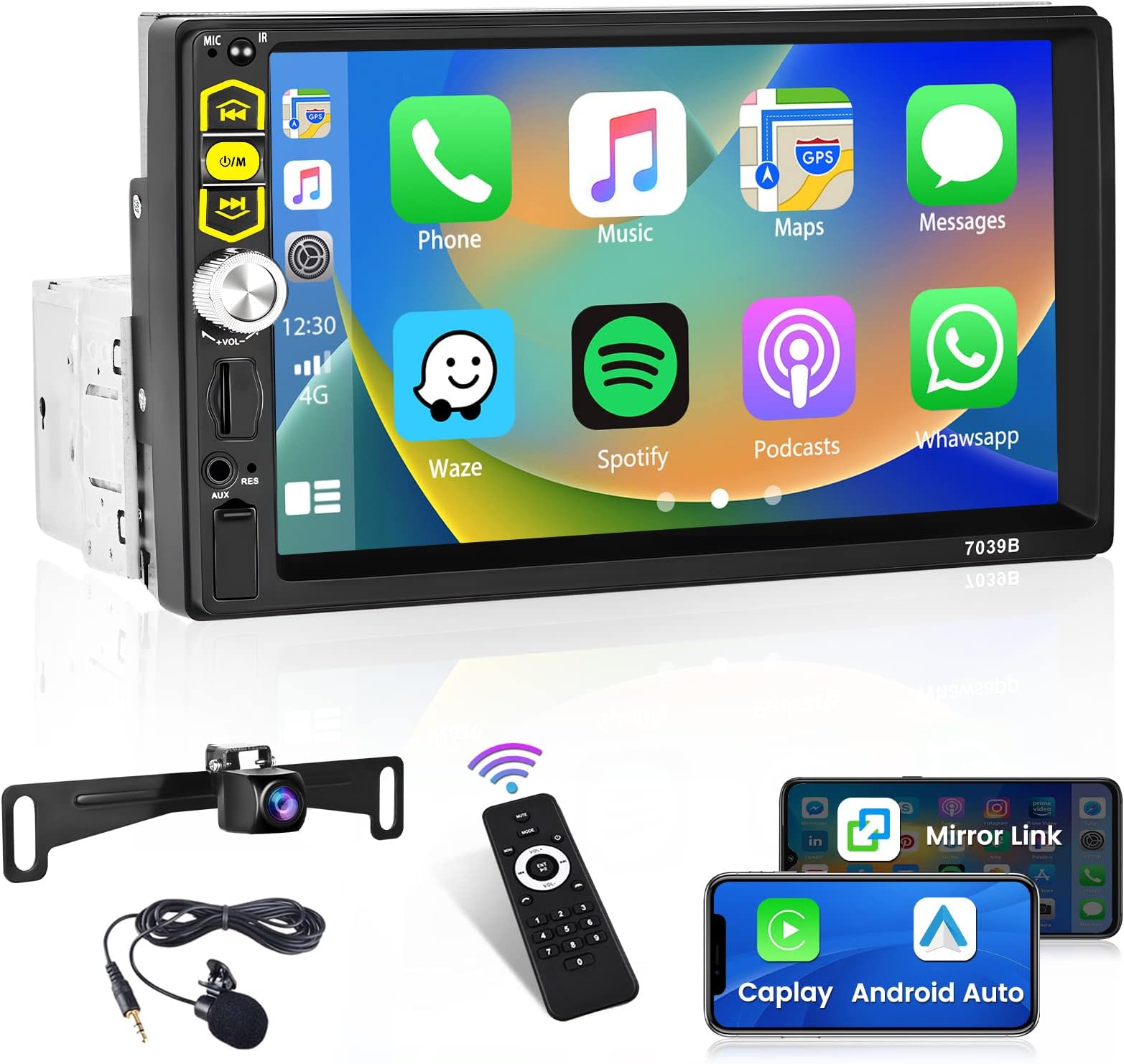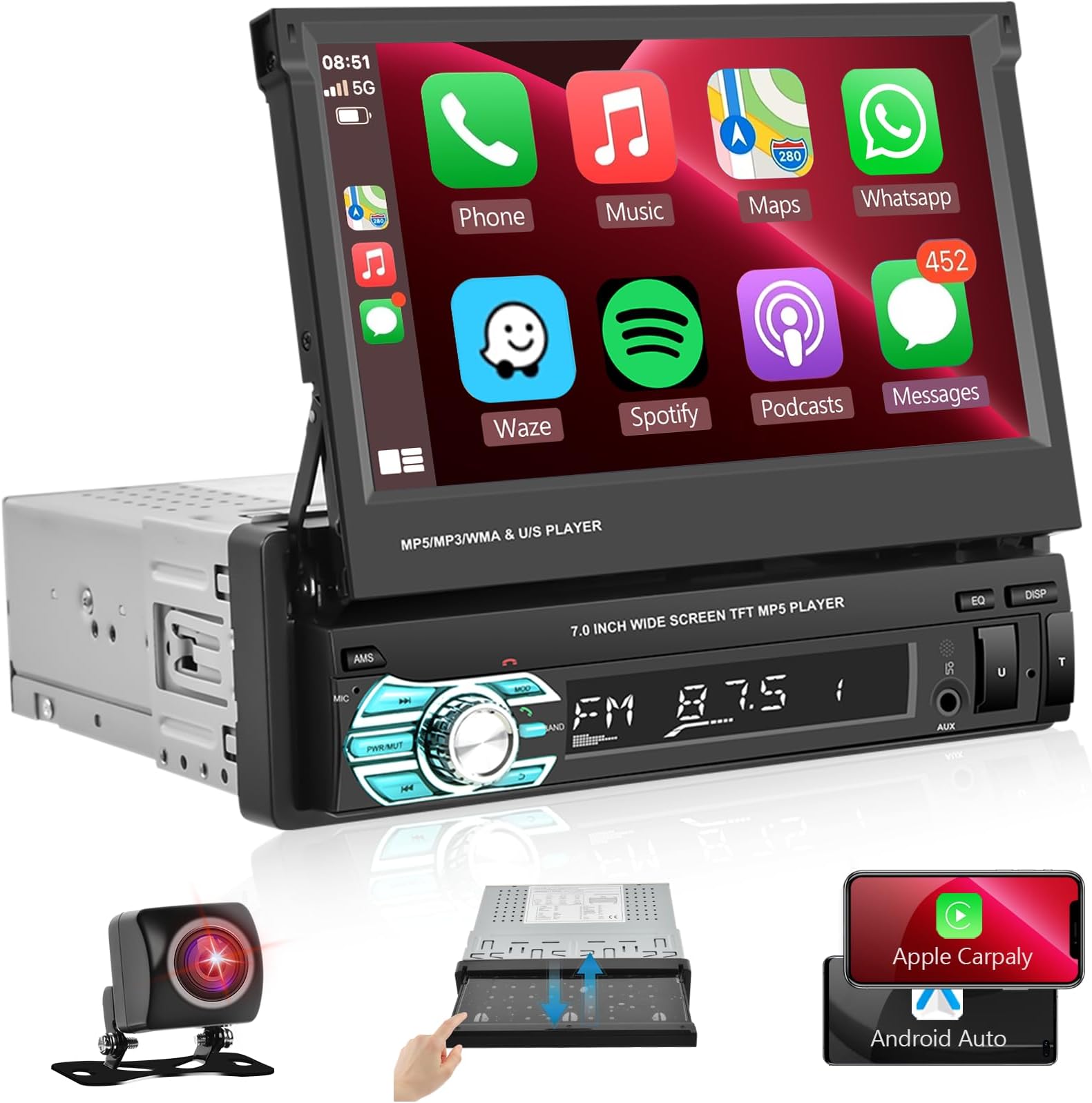 1 Din Autoradio Mit Wireless CarPlay & 7 Zoll Klappbildschirm - Inklusive Rückfahrkamera