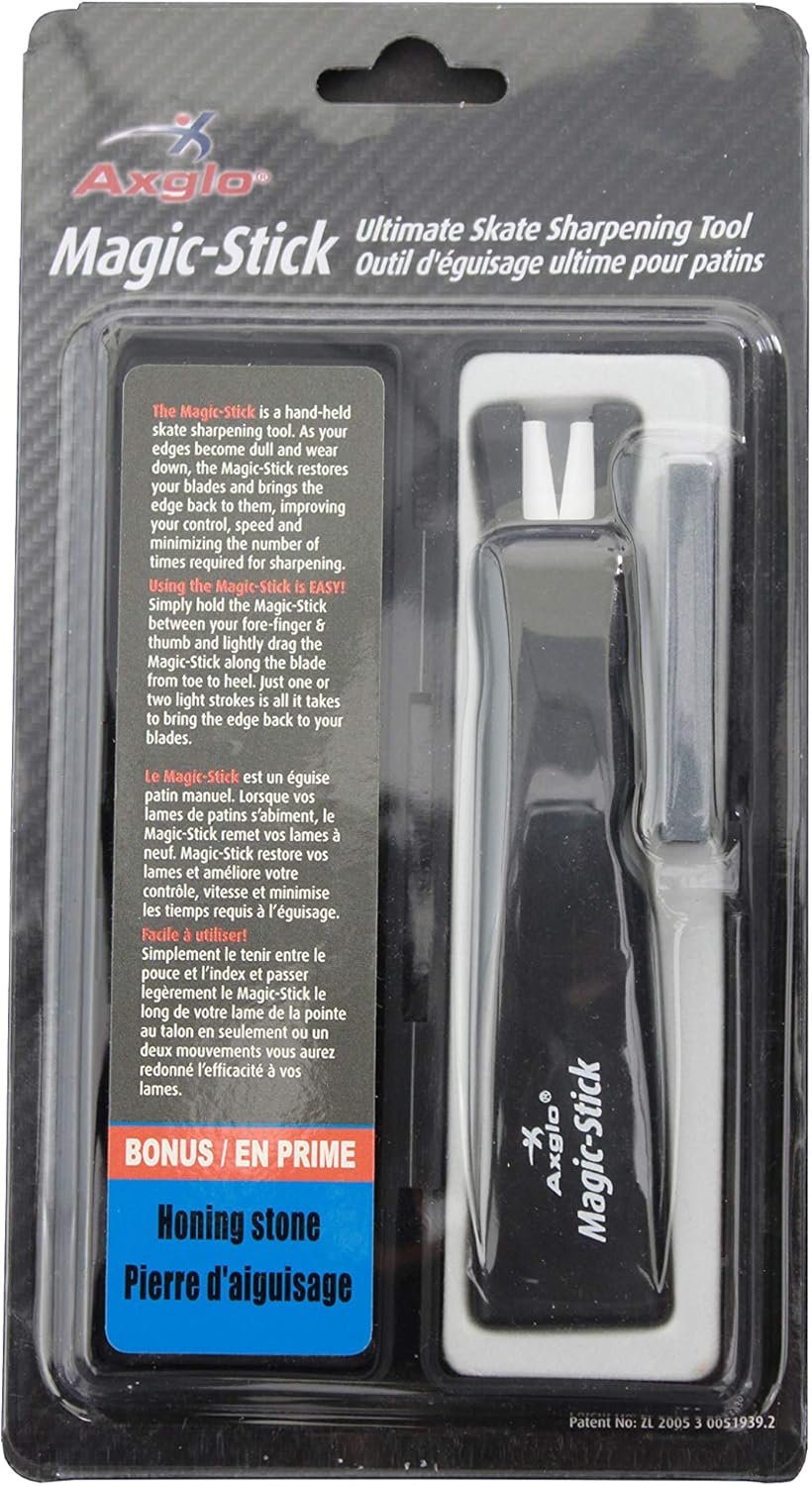 Eishockey-Spieler und Eiskunstläufer - dieser Axglo Magic Stick ist euer bester Freund für scharfe Klingen! Ein handgehaltenes Schärfgerät zum bequemen Schärfen der Klingen - super praktisch und einfach in der Anwendung. Kommt mit einem separaten Honstein, um deine Klingenkanten wiederherzustellen - so hast du immer die perfekte Schärfe. Perfekt für Eishockeyschlittschuhe, Eiskunstlaufschuhe oder Torwart-Schlittschuhe - einfach universell einsetzbar. Die Verpackungsmaße sind 1,27 x 12,7 x 22,86 cm - kompakt und leicht zu transportieren. Einfach mit zum Training oder Spiel nehmen und bei Bedarf die Klingen nachschärfen. Internationales Produkt mit separaten Bedingungen, wird aus dem Ausland verkauft und kann sich von lokalen Produkten unterscheiden. Aber die Qualität stimmt! Nie wieder stumpfe Klingen - mit diesem Magic Stick hast du immer den nötigen Biss auf dem Eis. Einfach anwenden und die verbesserte Leistung spüren! Perfekt für Profis und Hobbysportler gleichermaßen.