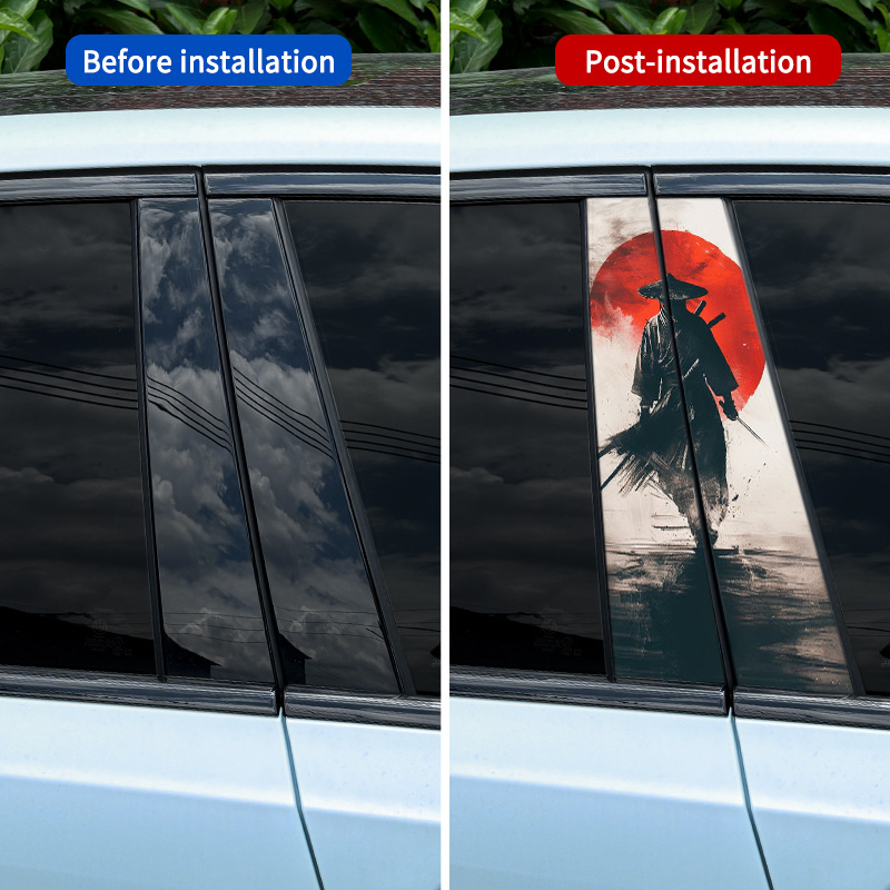 Give your car a fresh look with these practical B-pillar stickers! Made from durable vinyl, they're waterproof and provide sun protection while covering minor scratches. Easy to apply and remove without residue. The CFZ 002 design gives your vehicle a personalized touch. Fits various car models - simply clean the surface, peel and stick. An affordable way to refresh your car's appearance!