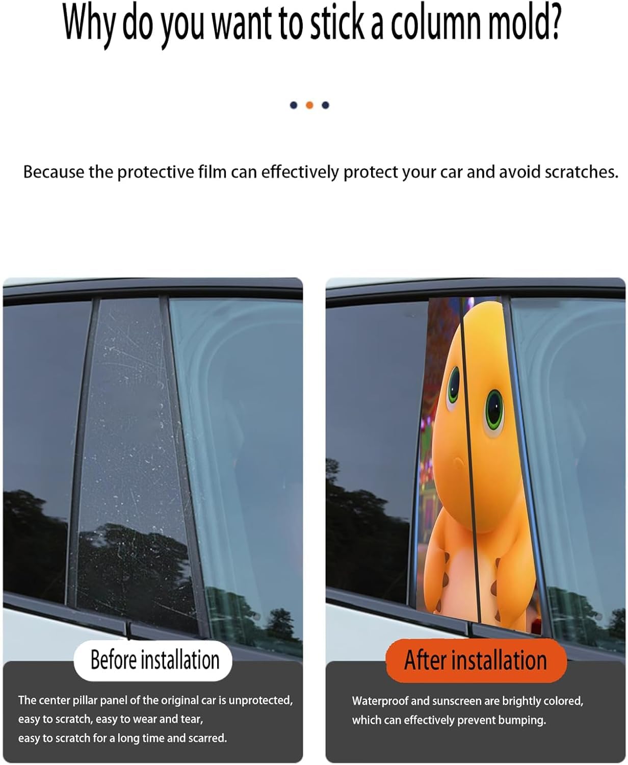 3D Hundemuster Auto B-Säulen Aufkleber - 2er Set Vinyl Schutzfolie 50x25cm