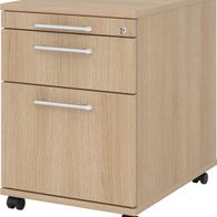 Endlich Ordnung im Büro! Der bümö Rollcontainer mit 3 Schubladen und nem praktischen Schloss ist dein neuer bester Freund. Sieht super aus in Eichenoptik und ist total flexibel - ob unter dem Schreibtisch, daneben oder als mobiler Schrank. Mit den kugelgelagerten Schienen gleiten die Schubladen super leise und sanft zu. Das Schloss sichert alle Schubladen auf einmal, perfekt für wichtige Unterlagen. Und die kleine Stiftablage oben hilft dir, Kleinkram ordentlich zu verstauen. Die Rollen sind leichtgängig und halten trotzdem stabil auf jedem Boden. Kommt schon montiert an - einfach auspacken und sofort nutzen! Ob im Homeoffice oder im Großraumbüro, mit dem Container hast du alles im Griff und siehst dabei noch gut aus. Ein echter Hingucker, der richtig was kann!