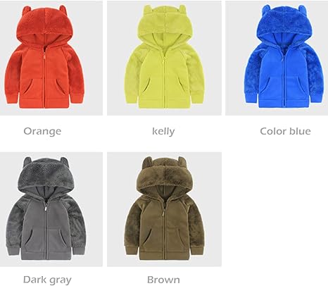 So süß und kuschelig warm! Dieser Kinder-Wintermantel mit niedlichen Bären-Ohren an der Kapuze begeistert jedes Kind. Aus weichem, hochwertigem Polyester-Fleece gefertigt, hält die Jacke selbst bei kaltem Wetter schön warm. Der kuschelige Pelzkragen und die gemütliche Kapuze schützen zusätzlich vor Wind und Kälte. Perfekt für Jungen und Mädchen gleichermaßen - in verschiedenen Größen von 86/92cm bis 128cm erhältlich. Ideal für den Kindergarten, Spaziergänge oder Outdoor-Aktivitäten wie Schlittenfahren. Der klassische, einfache Stil ist super kombinierbar und die Jacke ist besonders langlebig - genau das Richtige für aktive Kinder! Mit praktischen Taschen für kleine Schätze und einfachem Reißverschluss. Mach dein Kind winterfit mit dieser absolut niedlichen Bären-Jacke, die nicht nur warm hält, sondern auch richtig gut aussieht!