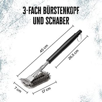 Sauberer Pizzaofen in Sekunden! Diese 66cm lange Bürste von Senwosa macht die Reinigung deines Pizzaofens zum Kinderspiel. Mit Edelstahl-Borsten entfernt sie Asche und Rückstände effektiv. Der integrierte Schaber löst hartnäckige Beläge vom Pizzastein. Super: Ein Ersatzkopf ist bereits dabei - doppelte Lebensdauer! Der lange Griff hält deine Hände sicher von der Hitze fern. Passt für Ooni, Gozney und andere Pizzaöfen. Ein Muss für jeden Pizza-Liebhaber!