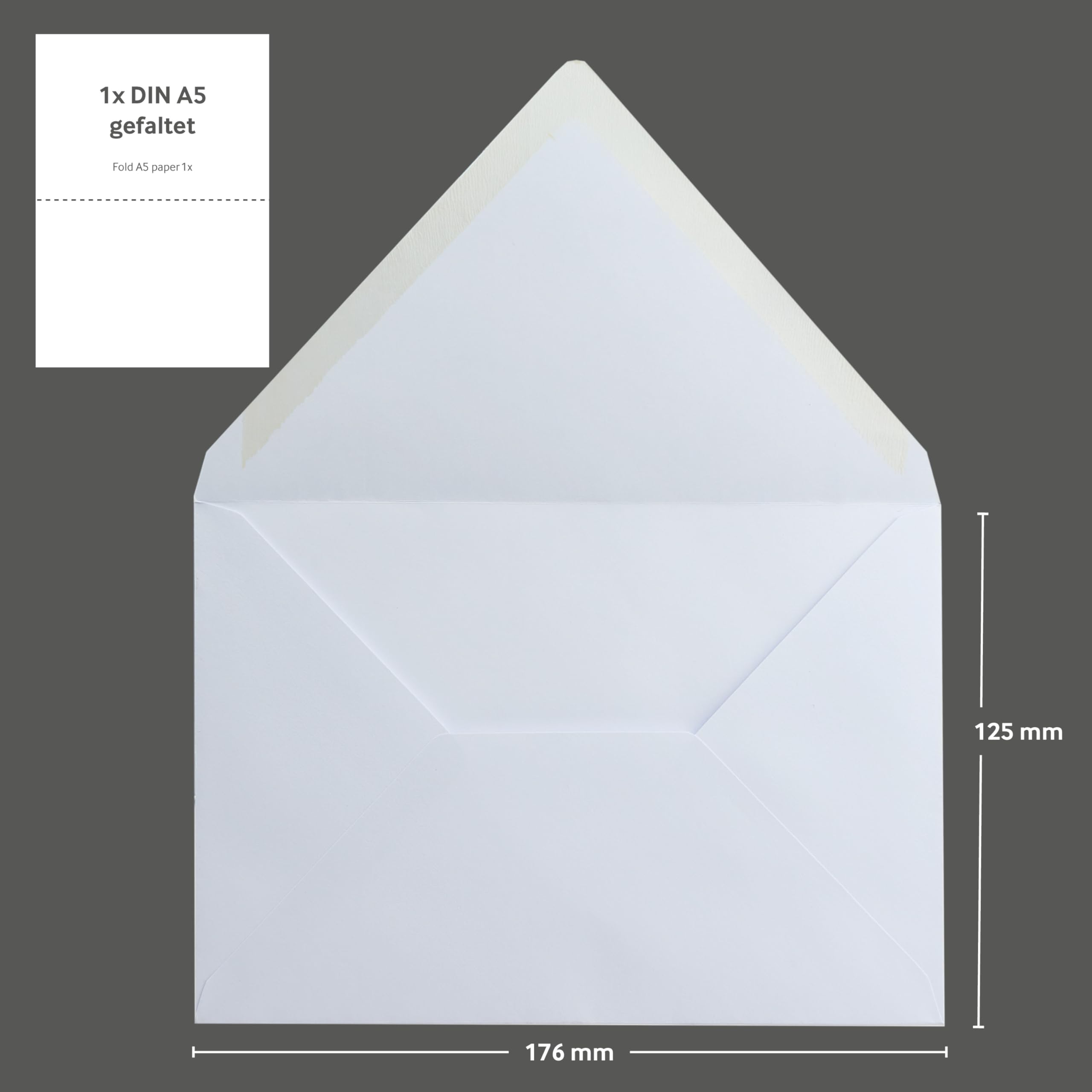 Ohne Fenster, mit gerader Klappe und Selbstklebestreifen - einfach zuklappen und fertig. Lassen sich super mit Tintenstrahl- oder Laserdruckern bedrucken, oder einfach mit der Hand beschriften. Das matte Weiß sieht einfach elegant aus.