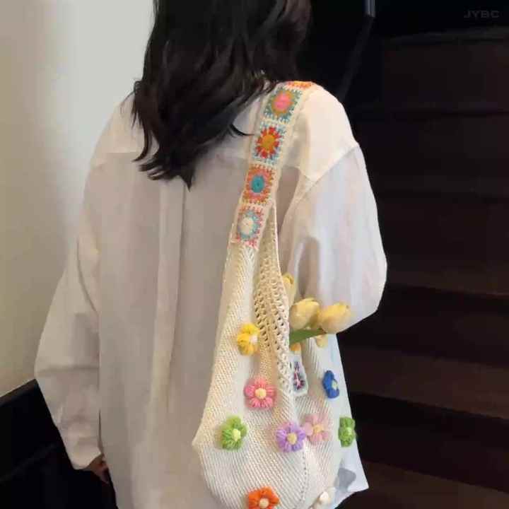 BACH AND BOUJEE Häkel Umhängetasche Mit Schleife - Boho Strandtasche Für Damen