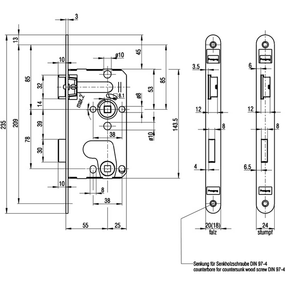 Hey, dieses ZT Einsteckschloss ist genau das Richtige für deine Zimmertür! Nach DIN 18251-1 Klasse 3 gefertigt - das bedeutet: gute Sicherheitsstandards für den Hausgebrauch. Mit allseitig geschlossenem Schlosskasten für extra Stabilität. Die Stulplänge beträgt 235mm, der Vierkant ist 8mm und die Entfernung 78mm - alles standardmäßig. Falle und Riegel sind aus robustem Zinkdruckguss, also nichts mit schnell kaputt. Perfekt für Schlafzimmer, Kinderzimmer oder andere Innentüren in der Wohnung. Einfach einzubauen, auch für Heimwerker gut machbar. Das Schloss ist 1-tourig und kommt ohne Schließblech - also genau das was man für normale Zimmertüren braucht. Qualität die hält, zu nem fairen Preis. Einfach bestellen und deine Tür sicher machen!