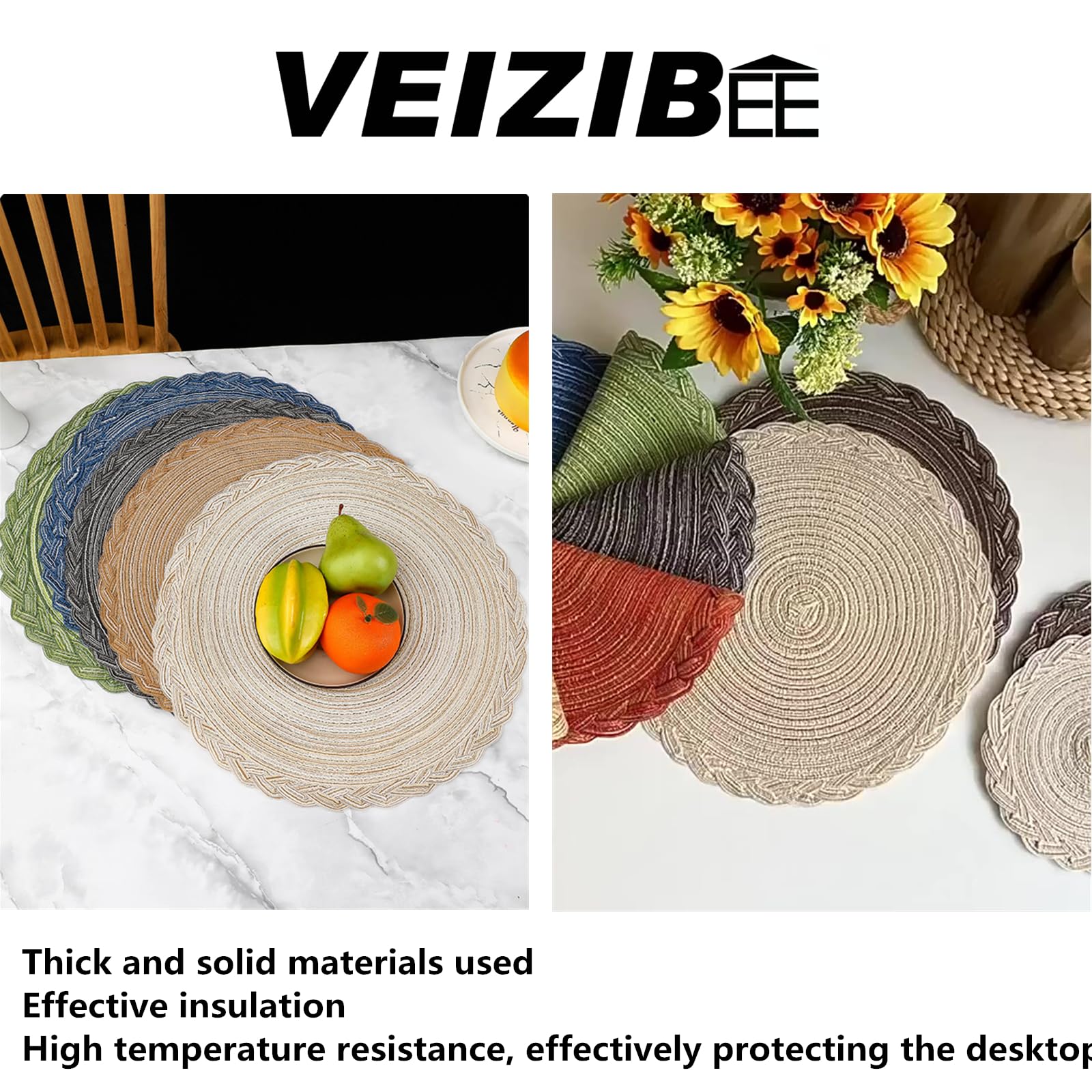 BEBEMOKO Runde Platzsets - 2 Stück, Hitzebeständig 38cm