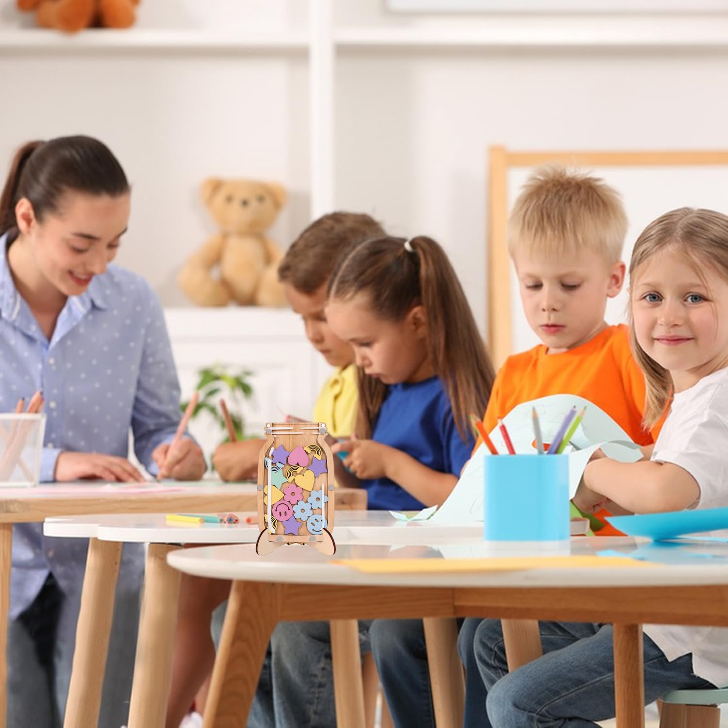 So macht Erziehung Spaß! Dieses niedliche Belohnungsglas von BEELUKY verwandelt lästige Alltagssituationen in ein spannendes Spiel. Mit 28 bunten Sternen belohnst du dein Kind für positive Verhaltensweisen - ob beim Töpfchentraining, Hausaufgaben machen oder Zimmer aufräumen. Das Glas besteht aus hochwertigem Acryl und Holz, ist also robust und sicher für kleine Hände. Die magnetischen Elemente machen es super flexibel - ob am Kühlschrank oder Whiteboard. Das Beste: Kinder sehen ihre Fortschritte ganz konkret und werden so spielerisch motiviert. Perfekt für zu Hause, aber auch für Kindergärten und Schulen geeignet. Ein pädagogisch wertvolles Tool, das nicht nur das Verhalten verbessert, sondern auch das Selbstbewusstsein stärkt. Und als Bonus sieht das Glas noch richtig dekorativ aus!