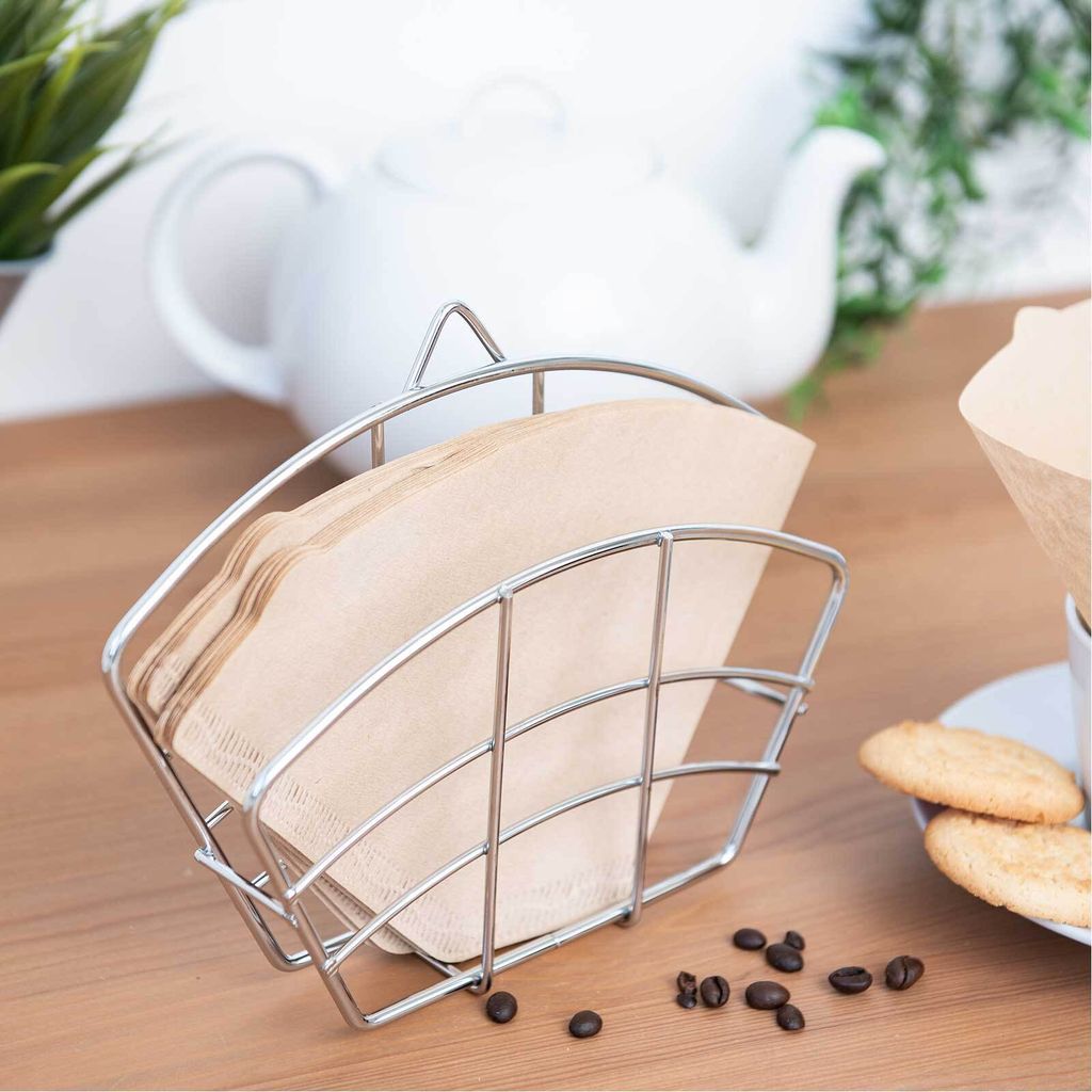 Nie wieder umgeknickte Filtertüten! Dieser Metall-Halter ist die perfekte Lösung für deine Kaffee-Zubereitung. Im praktischen Dreieck-Design (11x4,8x11,1 cm) aus hochwertigem Metall - super stabil und langlebig. Einfach die Filtertüte reinsetzen und schon bleibt sie in Form. Passt für alle kegelförmigen Filterpapiere mit flachem Boden. Hält deine Arbeitsfläche sauber und die Filter trocken. Perfekt für Zuhause, Büro oder Café - überall dort, wo guter Kaffee gebrüht wird! Einfach aufstellen, Filter rein - und schon kann der Kaffeegenuss beginnen. Kleines Teil, großer Nutzen!