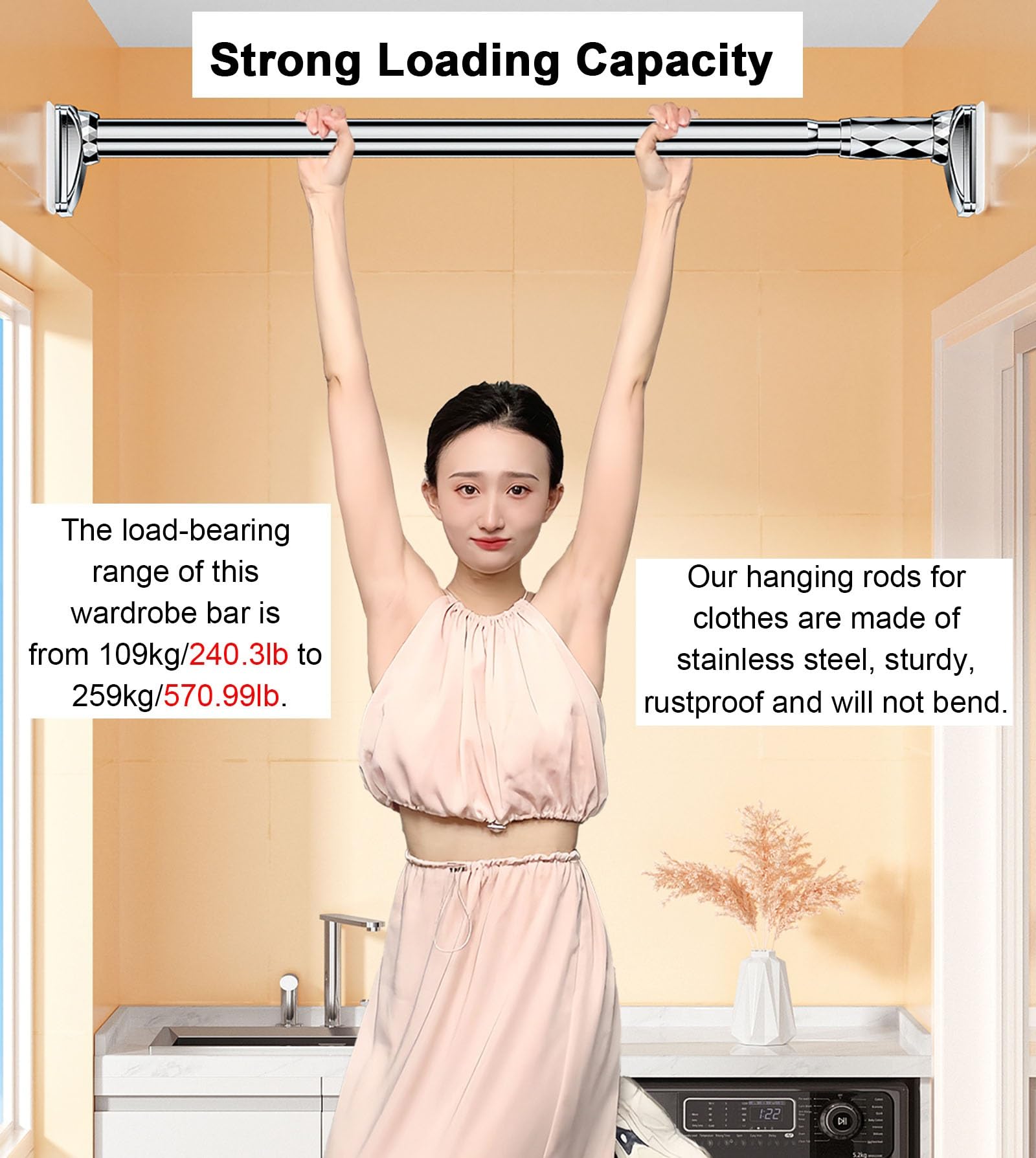 BESTYASH Verstellbare Kleiderstange Edelstahl - Teleskopstange Für Schrank & Wäscheraum