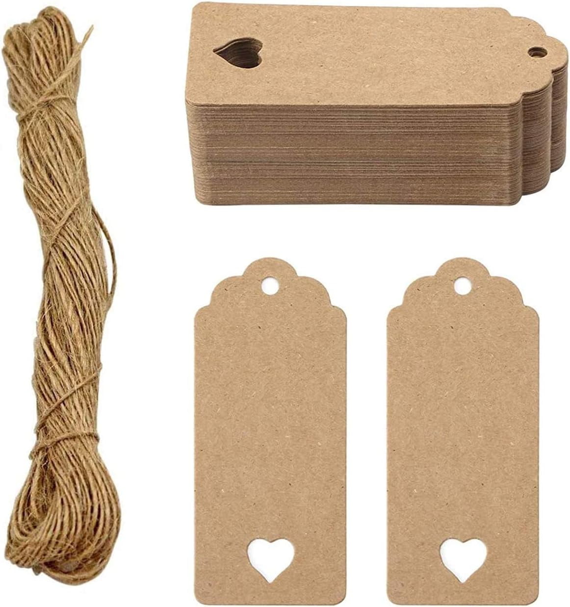 BLeezm 100 Stück Geschenkanhänger Kraftpapier - Weißlich-Beige Mit Juteschnur Für Geschenke & Basteln