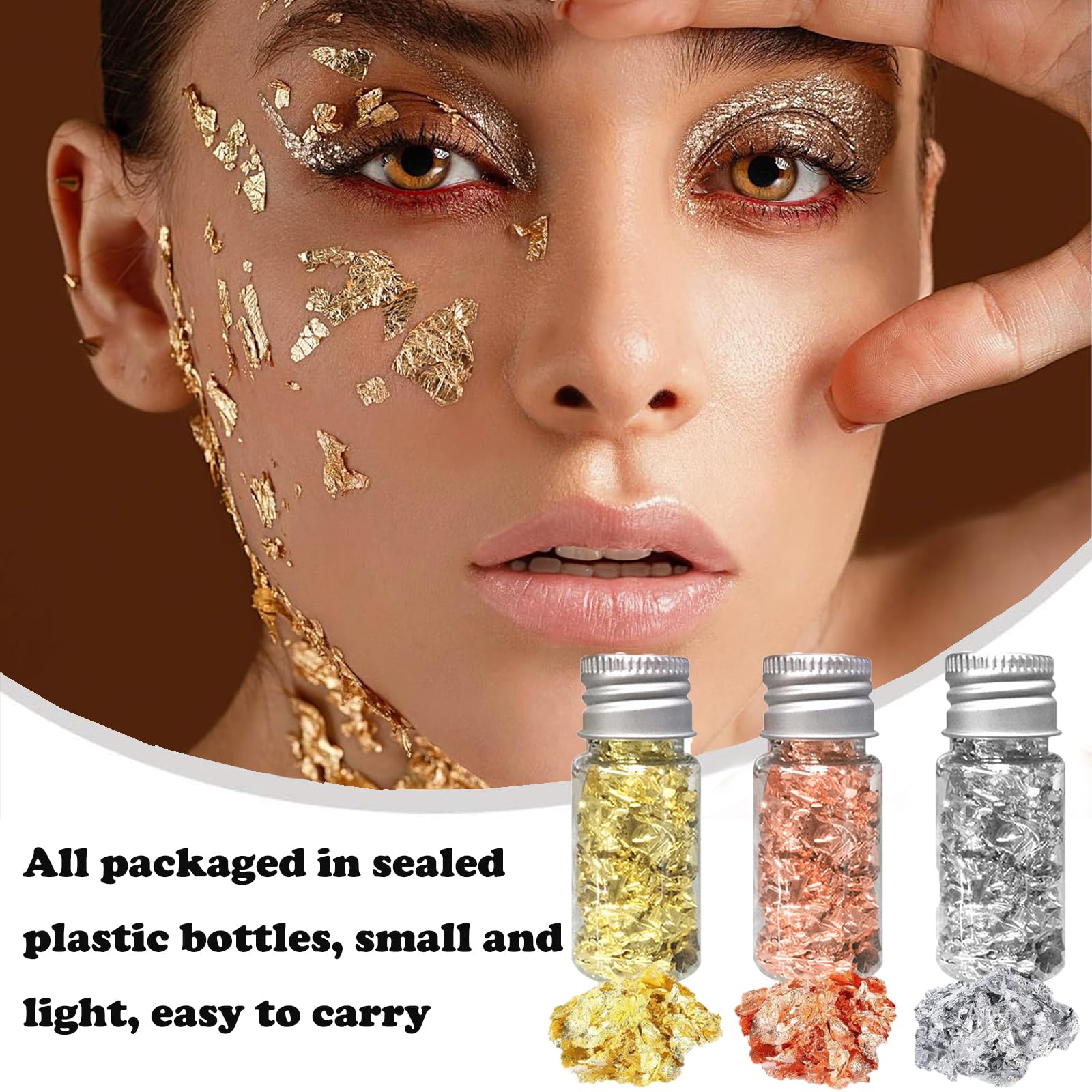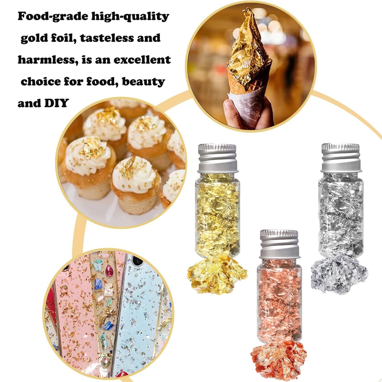 BOBISHE Essbar Blattgold - 3 Flaschen Goldfolie Flocken Für Torten & DIY Dekoration