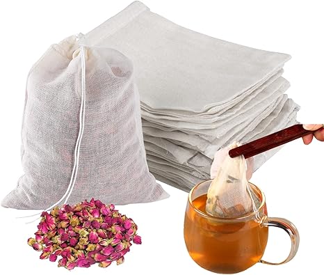 BOHUIZ 50 Stück Musselin Beutel 10x8cm - Wiederverwendbare Gewürzbeutel Mit Kordelzug