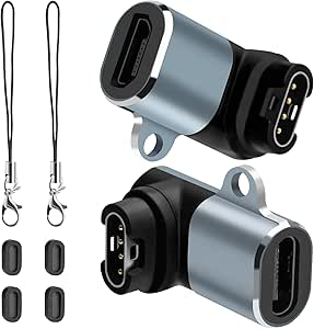 Mega praktisch dieses Adapter-Set für deine Garmin Uhr! Enthält USB-C und Micro-USB Adapter - für fast alle Garmin Modelle. Mit 4 Staubschutzsteckern - schützt den Ladeport wenn nicht in Gebrauch. Und 2 Lanyards dabei - immer griffbereit am Rucksack oder Schlüsselbund. Rechtwinkliges Design - verhindert unbeabsichtigtes Abziehen. Aus Aluminiumlegierung - leicht und langlebig. Kompatibel mit Fenix 7/6/5, Venu, Vivoactive, Forerunner und vielen mehr. Perfekt für unterwegs - ob Wandern, Reisen oder im Büro. Kein Kabelsalat mehr - einfach Adapter aufstecken und laden. Spart Platz in der Tasche - viel kleiner als original Ladekabel. Einfach mitnehmen und deine Garmin Uhr ist immer einsatzbereit. Super für alle die mehrere Lademöglichkeiten brauchen. Qualitativ hochwertig - hält sicher lange. Einfach genial für alle Garmin-Besitzer - endlich keine Sucherei mehr nach dem passenden Ladekabel!