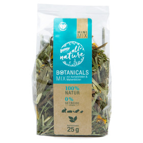 Mmmmh, deine Kaninchen und Meerschweinchen werden verrückt nach diesem Futter sein! BunnyNature BOTANICALS MAXI MIX mit Pfefferminzblättern (11%) und Kamillenblüten (2%) - riecht einfach himmlisch! 100% naturbelassen und komplett getreidefrei - so soll artgerechtes Futter sein! Perfekt als Hauptfutter oder als leckerer Snack für Zwergkaninchen, Meerschweinchen, Chinchillas und Degus. Mit Grünem Hafer, Spitzwegerich, Birkenblättern und vielen anderen Kräutern - eine richtige Delikatesse! Die Mischung entspricht dem natürlichen Speiseplan der Pflanzenfresser - gesund und lecker! In der 400g Packung - ideal zum Ausprobieren! Einfach füttern und zuschauen wie deine Kleinen genüsslich schlemmen - das ist pure Freude für Tier und Besitzer!
