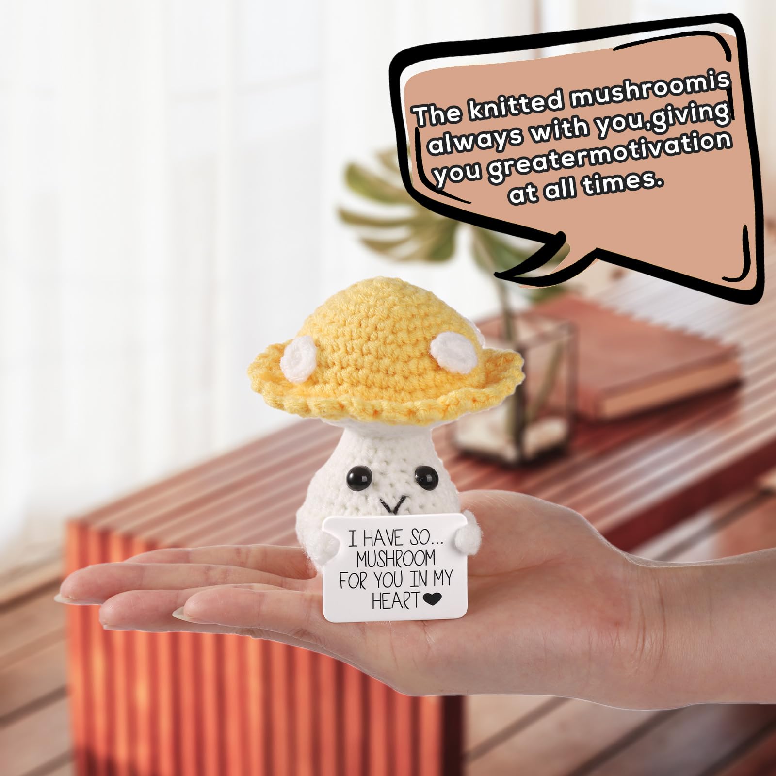 BOXOB Positiver Pilz Häkelpuppe 8,5cm - Süße Strickfigur Mit Motivationskarte