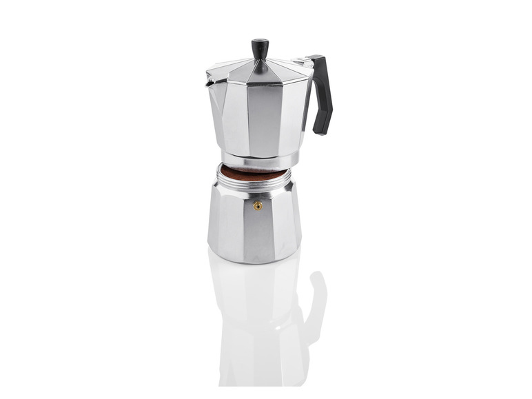 Italienischer Kaffeegenuss für zu Hause! Dieser klassische Espressokocher aus Aluminium bringt echten Barista-Charme in deine Küche. Für satte 9 Tassen starken Mokka - perfekt für Familie oder Gäste. Mit ergonomischem Griff und Silikoneinsatz für sicheren Halt. Avantgardistisches Design meets traditionelle Kaffeekultur. Aus hochwertigem Aluminium für optimale Wärmeverteilung. Aber Achtung: Nicht für Induktionsherde geeignet und bitte nicht in die Spülmaschine! Einfach auf den Herd stellen und wenige Minuten später duftet's nach frischem Italien-Urlaub. Für alle, die es stark und aromatisch lieben - caffè perfetto!