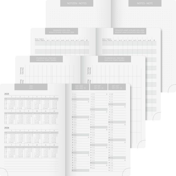 Der perfekte Kalender für Schüler! Der BRUNNEN \Bear\ Kalender für 2025/2026 im handlichen A6-Format (120x160mm) hat alles, was du fürs Schuljahr brauchst. Mit 208 Seiten, davon 2 Seiten pro Woche, bleibst du immer organisiert. Das Kalendarium geht von Juli 2025 bis Dezember 2026 - also volle 18 Monate. Super praktisch: Ferientermine für Deutschland, Österreich, Schweiz und andere Länder sind schon eingetragen. Dazu kommen 9 Notizseiten, 2 Stundenpläne, 2 Seiten für Notenübersicht und 6 Adressseiten. Der Gummizug hält alles sicher verschlossen, und mit Lineal und Sammeltasche ist er total praktisch. Der bunte PP-Einband ist flexibel und hat abgerundete Ecken - sieht nicht nur gut aus, sondern passt auch in jede Schultasche!
