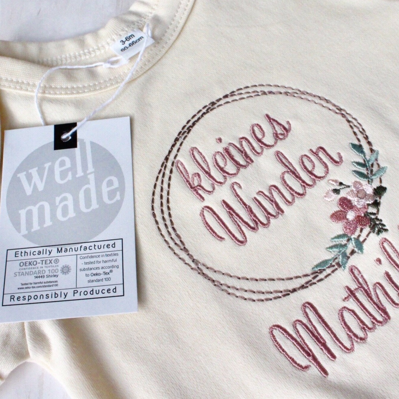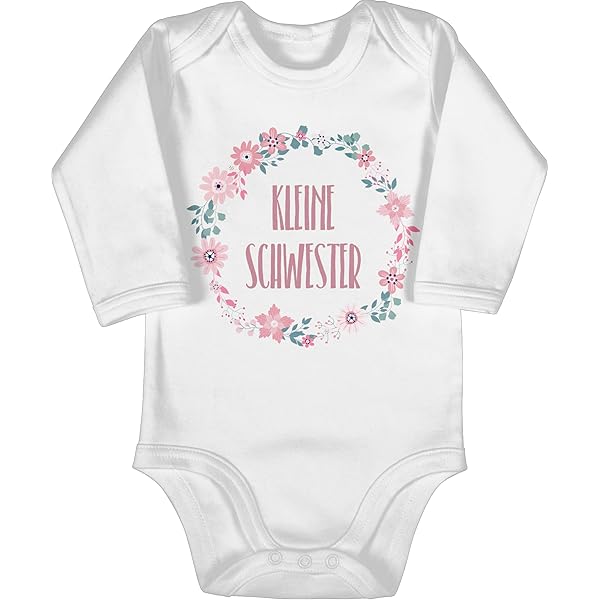 So süß für die kleine Schwester! Dieser weiche Langarm-Body aus 100% Bio-Baumwolle ist nicht nur super bequem, sondern sieht auch noch niedlich aus mit dem Blumenkranz-Design und dem Spruch 'Kleine Schwester'. Der Envelope-Halsausschnitt und die nickelfreien Druckknöpfe machen das Anziehen zum Kinderspiel. Perfekt für kühlere Tage und ein ideales Geschenk zur Geburt oder für Geschwisterkinder. Hautfreundlich, atmungsaktiv und bei 30°C waschbar. Macht jedes Baby zum kleinen Star! Einfach anziehen und strahlen lassen - mehr Braucht's nicht für glückliche Babys und stolze Geschwister.
