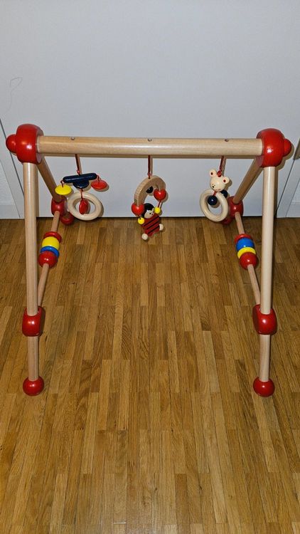 Dieser Vicloon Spielbogen aus Massivholz ist ein Traum für jedes Baby! Das stabile Dreieck (58x60x40cm) mit 12 Holzringen und 4 Anhängern lädt zum Greifen, Schauen und Spielen ein. Rutschfeste Aufkleber sorgen für sicheren Stand. Modernes, nordisches Design passt in jedes Wohnzimmer. Einfach zusammenzubauen und platzsparend faltbar - super für unterwegs oder wenn mal Gäste kommen. Fördert spielerisch Hand-Auge-Koordination und Feinmotorik. Aus glatt poliertem Holz ohne scharfe Kanten, also absolut babygerecht. Wenn du nach einer qualitativ hochwertigen, sicheren und schönen Spielmöglichkeit für dein Kleines suchst, ist dieser Spielbogen ideal!