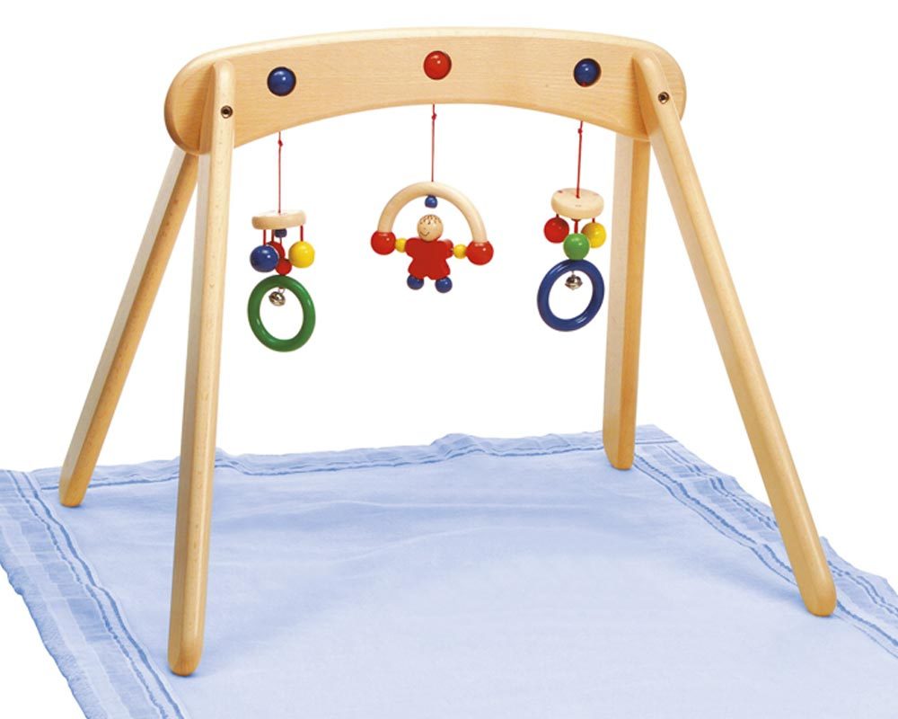 Vicloon Spielbogen Baby Holz - Faltbares Activity Trapez Mit Holzspielzeug