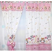 Baby Kinderzimmer Vorhänge Safari Eule Bärchen Sterne - 2er Set Baumwolle 155x155 Cm