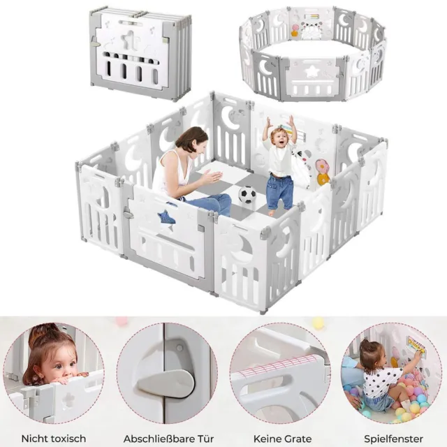 Hey, super Eltern! Dieser COSTWAY Baby Laufstall ist genau das, was ihr für euren kleinen Entdecker braucht! Mit 14 Teilen (12 Paneele + 1 Tor + 1 Aktivitätspaneel) schafft ihr einen riesigen, sicheren Spielbereich - groß genug für 1-2 Kinder!\n\nDie wissenschaftlich optimierte Höhe von 60 cm verhindert, dass eure Kleinen herauskommen, und die rutschfesten Fußbasen mit Saugnäpfen sorgen für absolute Stabilität. Das Sicherheitsschloss an der Tür kann von innen nicht geöffnet werden - so seid ihr immer auf der sicheren Seite.\n\nDas coole daran: Ihr könnt die Paneele frei kombinieren und in verschiedenen Formen aufstellen. Mal eckig, mal rund - ganz wie ihr es braucht! Und das Aktivitätspaneel mit Spielzeug hält euer Baby bestens unterhalten.\n\nHergestellt aus hochwertigem HDPE ist der Laufstall ungiftig, geruchsneutral und super leicht zu reinigen. Einfach abwischen, und schon ist er wieder blitzblank!\n\nUnd wenn ihr mal mehr Platz braucht: Der Laufstall lässt sich mühelos auf eine kompakte Größe zusammenfalten. Der praktische Griff macht das Verstauen und Transportieren zum Kinderspiel.\n\nPerfekt für zu Hause, aber auch super für unterwegs zu Oma oder im Urlaub. Gebt eurem Baby die Freiheit zu krabbeln und zu spielen - sicher und geschützt!