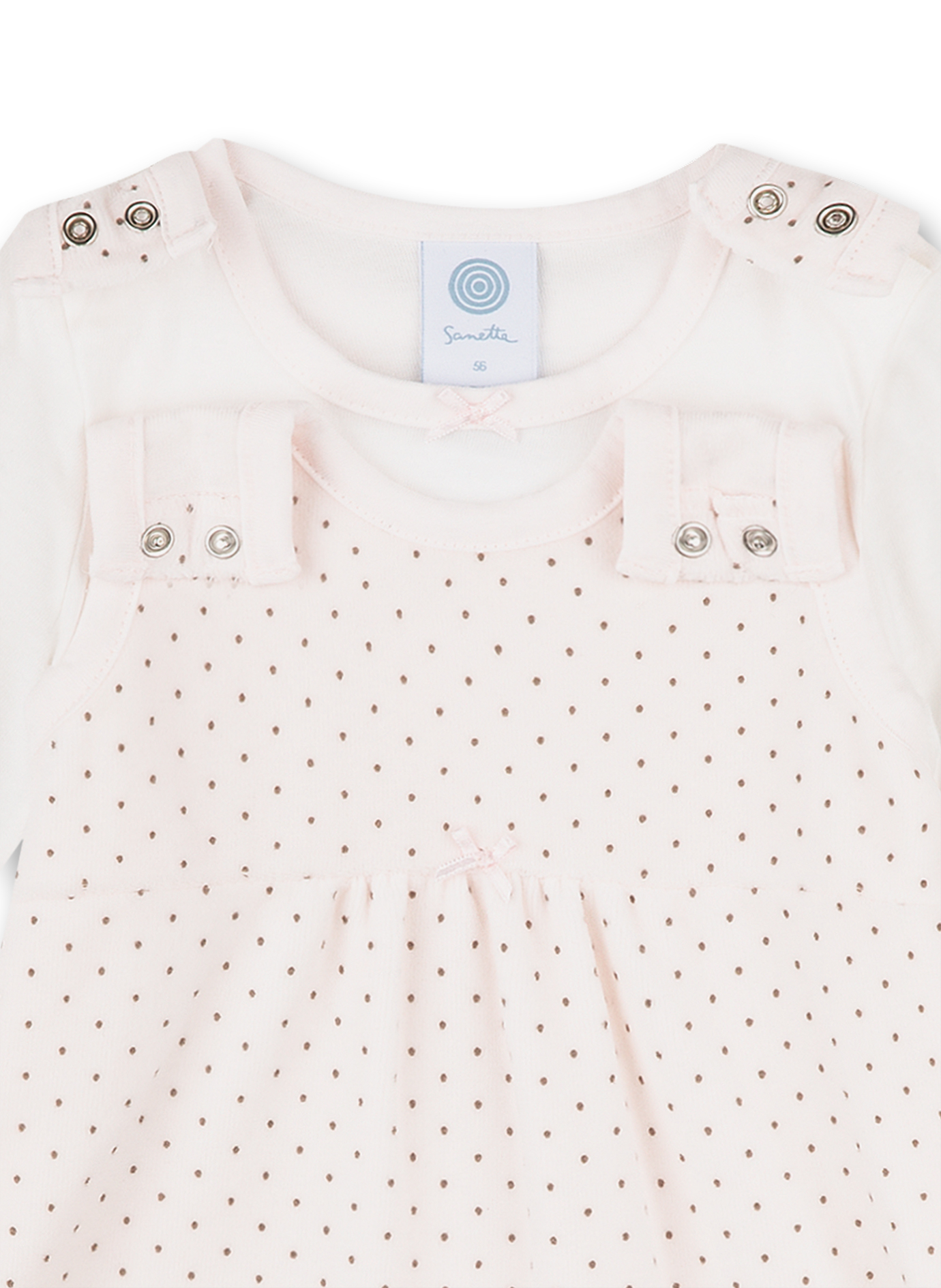Oh wie süß! Dieser Sanetta Strampler für Baby-Mädchen ist einfach nur kuschelig weich! Aus hochwertiger Baumwollmischung - natürlich und angenehm auf der Haut. 👶\n\nMit zartem Punkte-Print - total niedlich! Leichte Raffung vorn in der Mitte gibt Bewegungsfreiheit. Und das farblich abgesetzte Shirt-Design sieht einfach stylisch aus.\n\nSanetta-Qualität spürst du sofort:\n• Anschmiegsam und weich\n• Unverwüstlich waschbar\n• Atmungsaktiv\n• Hautfreundlich\n• Langlebig\n\nPerfekt für:\n• Nachts als Schlafanzug\n• Tagsüber als gemütlicher Overall\n• Zu Hause zum Spielen\n• Unterwegs im Kinderwagen\n• Als Geschenk für Baby-Mädchen\n\nDein Kleines fühlt sich pudelwohl und kann sich frei bewegen. Die lebensfrohen Farben machen einfach gute Laune!\n\nPflegeleicht - einfach in die Waschmaschine und trocknen. Hält auch häufiges Waschen problemlos aus.\n\nEinfach Qualität die man fühlt - genau richtig für zarte Babyhaut!