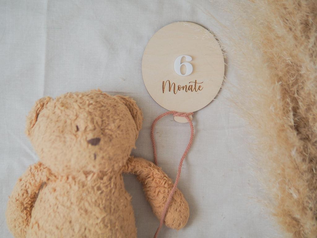 Baby Meilenstein Schild Holz - Hello World Rund 15cm Foto Requisite