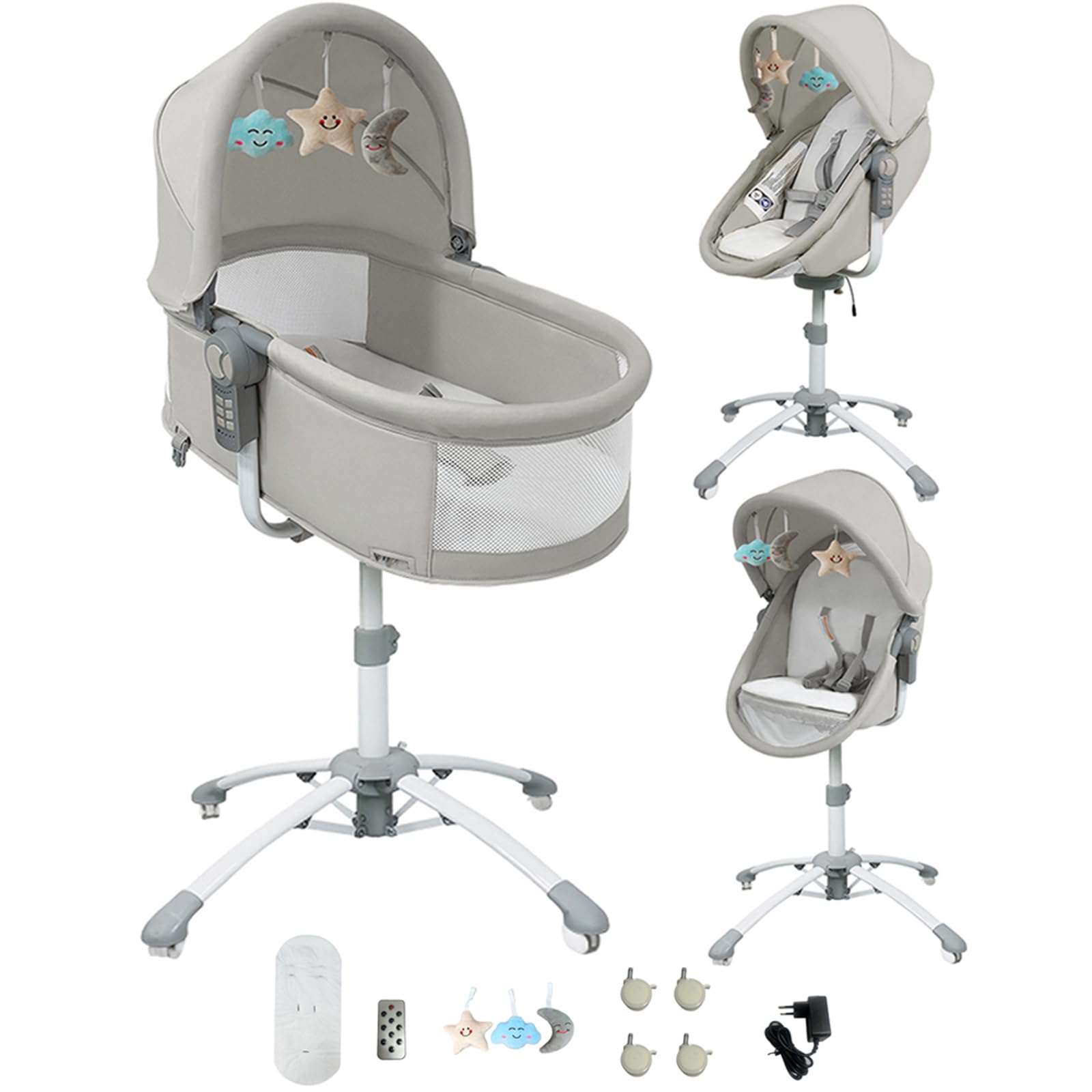 Das ultimative Beistellbett für moderne Eltern! Dieses elektrische Bettchen macht dir das Leben so viel einfacher. Mit 5 Schwingstufen die dein Baby sanft in den Schlaf wiegen - wie Mamas Arme. Die Bluetooth-Funktion ist genial: spiel beruhigende Schlaflieder ab oder stream deine eigene Musik. Die Fernbedienung ist super praktisch - stell Timer von 8, 15 oder 30 Minuten ein ohne aufzustehen. Zwei Höhen verstellbar, passt sich perfekt an dein Bett an. Das Moskitonetz mit Reißverschluss schützt vor lästigen Insekten. Und wenn dein Baby mal spuckt - kein Problem, das verstellbare Schrägdesign hilft dabei. Aus hautfreundlichen Materialien und hält bis zu 80 kg! Mit Rollen zum leichten Verschieben und faltbarem Design für platzsparende Aufbewahrung. Luftdurchlässige Netzseiten sorgen für gute Belüftung. Einfach das beste Beistellbett was du finden kannst - dein Baby schläft besser und du hast mehr Freizeit!