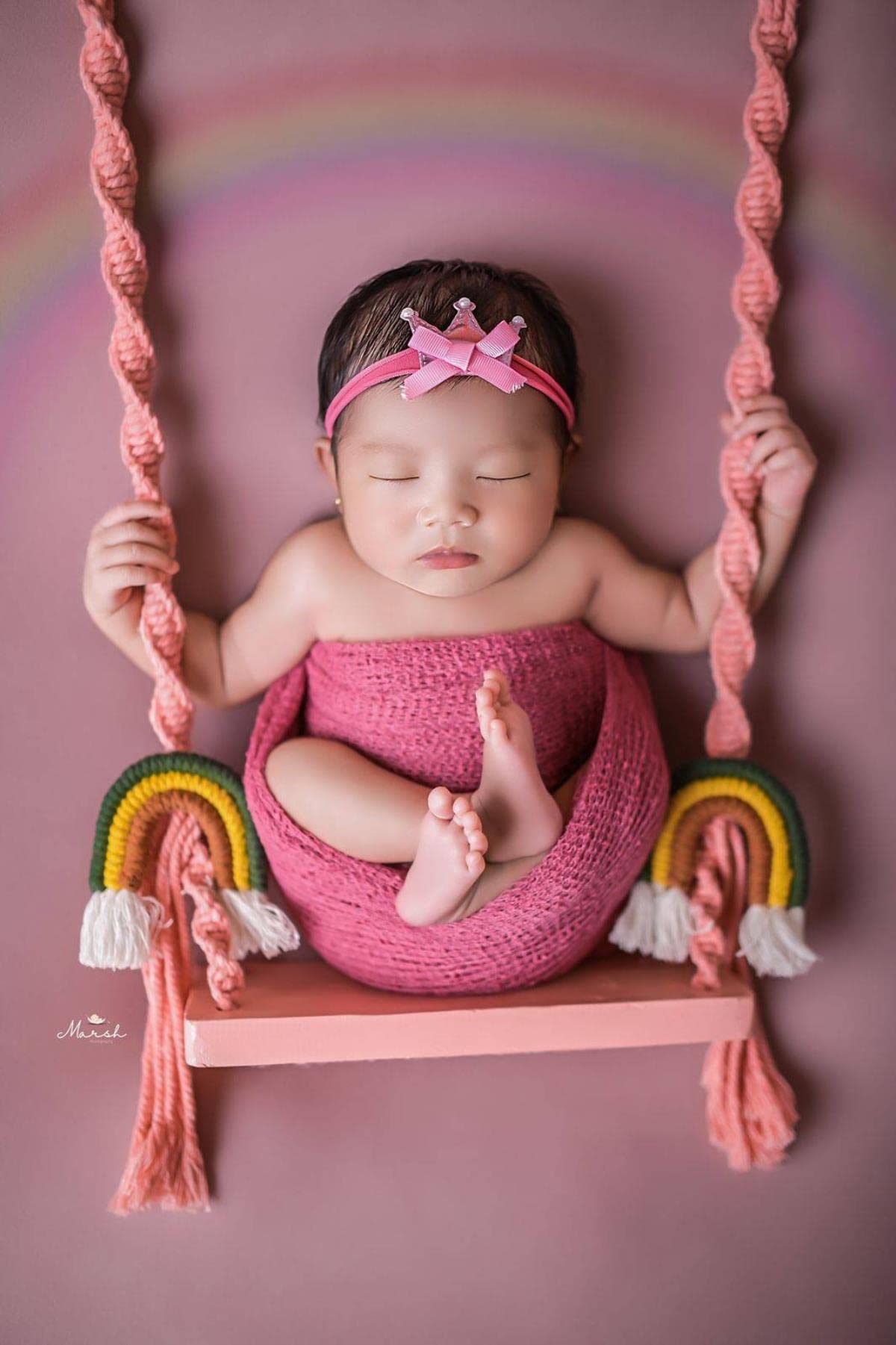 Diese süße Makramee-Schaukel ist die perfekte Requisite für bezaubernde Babyfotos! Handgefertigt aus cremefarbenem Seil und glattem Holz, liegt das Baby sicher auf einer flachen Oberfläche – die Schaukel wird NICHT aufgehängt! Mit 2 Clips für sicheres Positionieren. Ideal für Studio-Shootings, Babypartys oder Meilenstein-Fotos. Immer unter Aufsicht verwenden. Nur für Fotos, nicht als Spielzeug oder echte Schaukel. Schafft natürliche, zeitlose Bilder, die man ewig liebt. Ein Muss für professionelle Babyfotografie!