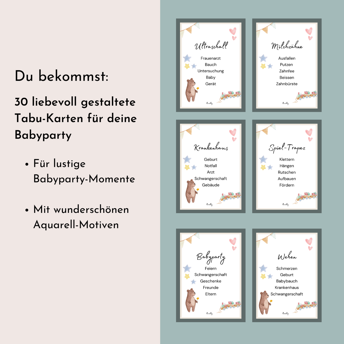 Das perfekte Spiel für jede Babyparty! Dieses Baby Shower Bingo bringt garantiert Stimmung in die Runde. Mit 25 hochwertigen Spielkarten im modernen Design - jede mit 25 lustigen Aufgaben rund um Schwangerschaft und Baby-Themen. Einfach die Namen der Gäste eintragen und dann geht's los: Wer findet als Erster eine volle Reihe? Zwei Spielvarianten sorgen für Abwechslung und die Anleitung erklärt alles ganz einfach. Super als Eisbrecher - so kommen auch Gäste, die sich nicht kennen, schnell ins Gespräch. Für jede Altersgruppe geeignet und ein absolutes Highlight auf jeder Babyparty! Auch ein wunderbares Geschenk für die werdenden Eltern - persönlich, witzig und unvergesslich. Einfach verteilen, Stifte bereitstellen und der Spielspaß kann beginnen! Deine Gäste werden begeistert sein - versprochen!