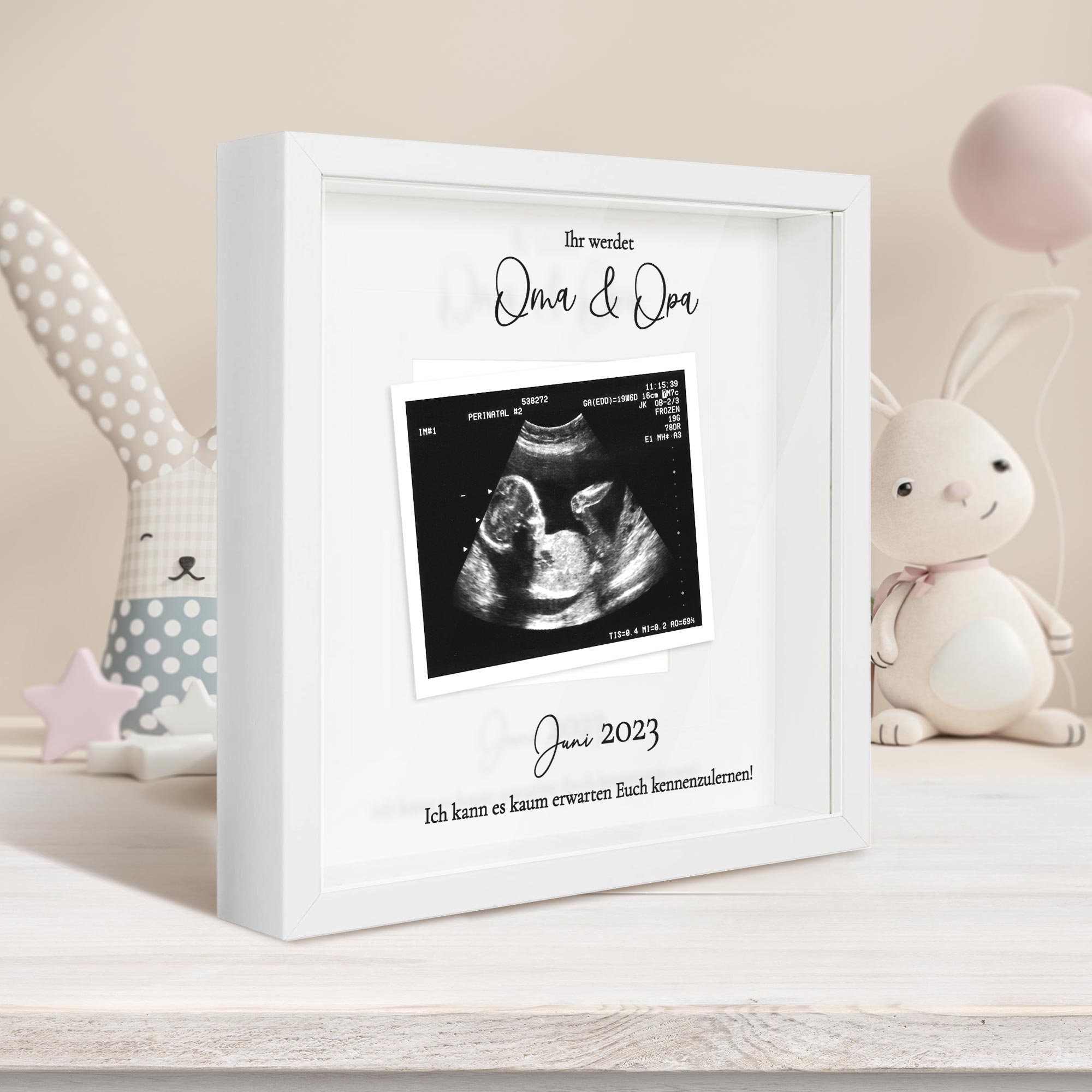 Dieser süße Baby-Bilderrahmen von PANYI ist die perfekte Art, die Schwangerschaft festzuhalten! Aus hochwertigem Holz mit niedlichem Elefanten-Design - ungiftig und mit abgerundeten Ecken, also absolut sicher. Der Clou: Der integrierte Countdown! Mit 20 nummerierten Anhängern (0-9) kannst du die verbleibenden Wochen bis zur Geburt anzeigen. Nach der Geburt verwandelst du den Rahmen einfach um und dokumentierst Geburtsdatum, Größe und Gewicht deines Babys. Der Rahmen hat innen 10,1x7,6cm Platz - perfekt für das erste Ultraschallbild. Auf der Rückseite findest du einen Standfuß und Aufhängevorrichtung, also kannst du ihn sowohl aufstellen als auch an die Wand hängen. Das perfekte Geschenk für werdende Eltern, Erstlingsmütter oder stolze Großeltern. So wird die Vorfreude auf das Baby noch greifbarer und die Erinnerungen bleiben für immer erhalten. Ein echter Hingucker im Kinderzimmer oder Wohnzimmer!