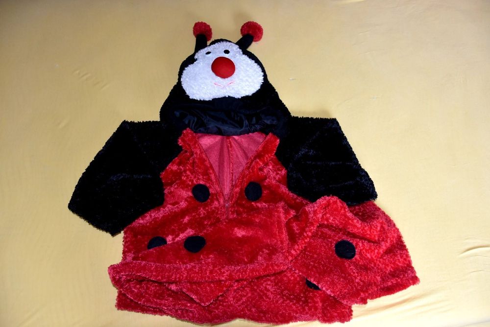 Oh wie süß! Dieses Marienkäfer-Kostüm verwandelt euren kleinen Schatz in den niedlichsten Käfer der Welt. Perfekt für Karneval, Halloween oder jede andere Kostümparty.\\n\\nWas dabei ist:\\n• Kapuzenoverall mit Flügeln\\n• Praktischer Reißverschluss vorne\\n• In schwarz-rot mit feuerhemmenden Eigenschaften\\n• Für 12-18 Monate\\n\\nDas Kostüm besteht aus weichem Polyester und Fleece - total bequem für die Kleinen. Und das Beste: Es sieht nicht nur super aus, sondern ist auch noch sicher. Schuhe und andere Accessoires sind übrigens nicht dabei, aber die könnt ihr ja ganz easy dazu kombinieren.\\n\\nEgal ob auf dem Karnevalsumzug oder der Kinderparty - mit diesem Marienkäfer-Kostüm wird euer Baby alle Herzen erobern!
