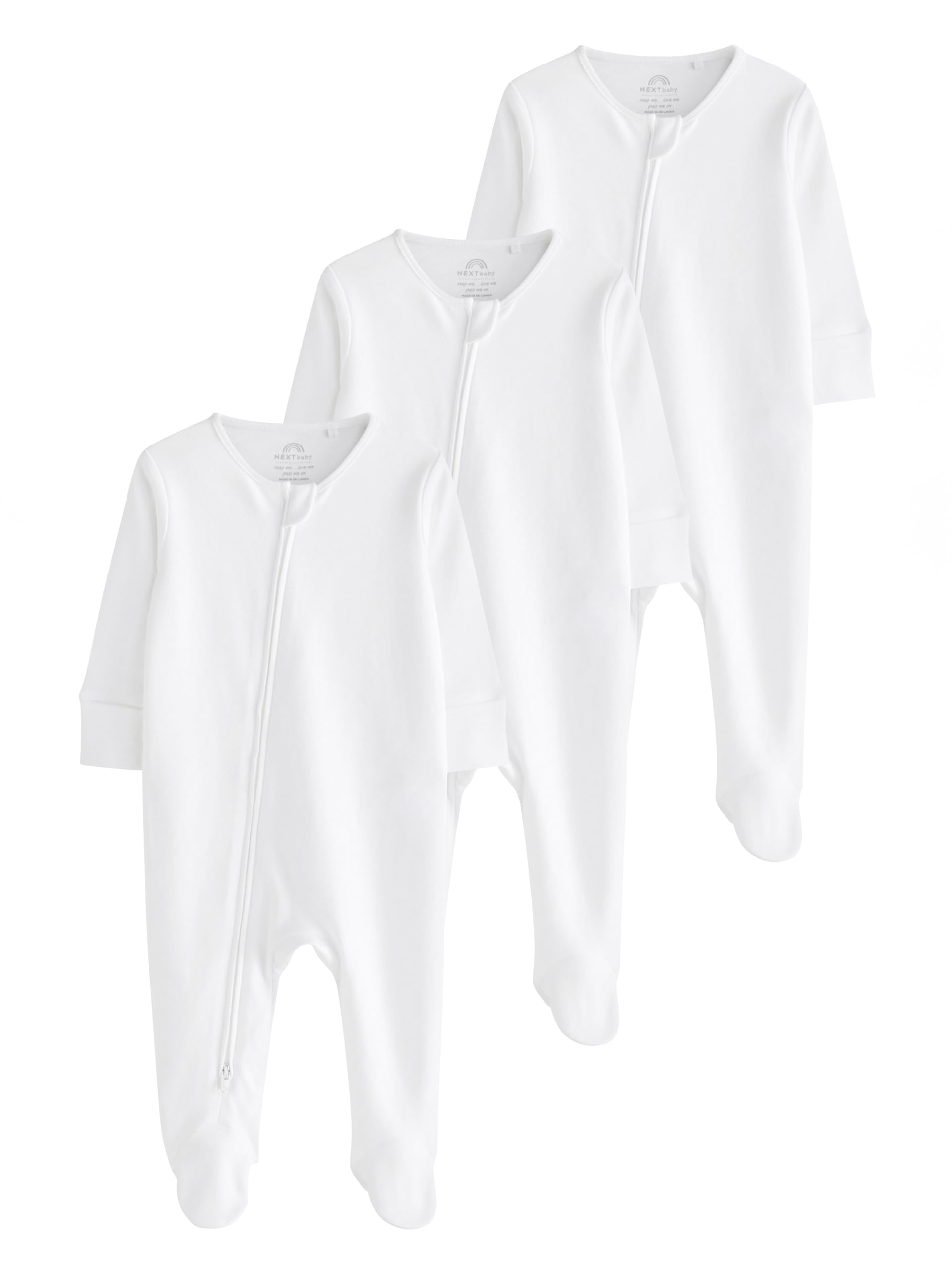 NEXT Essential Babyschlafanzüge 3er-Pack Weiß - Weiche Pyjamas Für Neugeborene 0 Monate