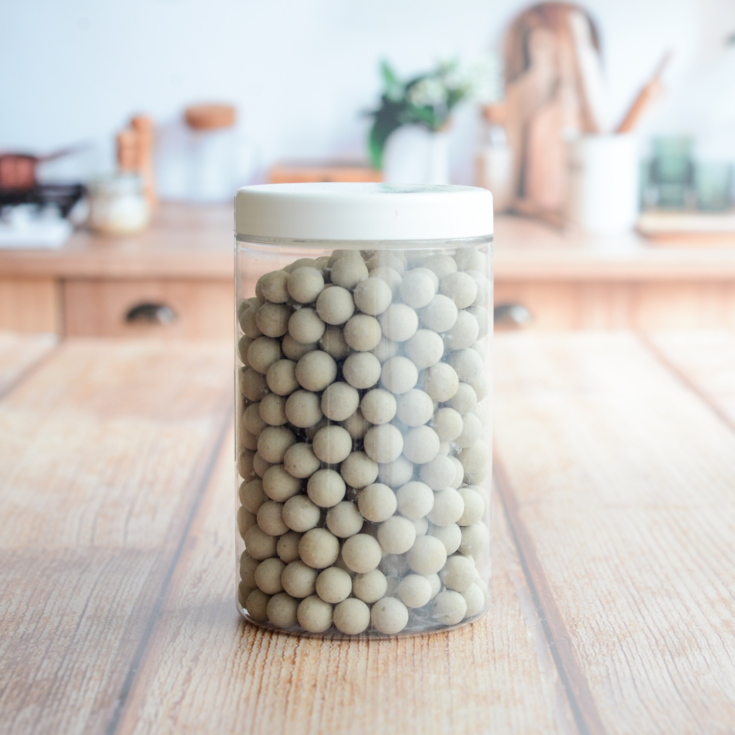 Bäckermeister aufgepasst! Diese Keramik-Backbohnen von Rocksheat sind deine Geheimwaffe gegen wellige Kuchenböden. Aus hochwertiger, lebensmittelechter Keramik bei 1200°C gebrannt, nehmen sie keine Gerüche an und sind absolut unbedenklich. Einfach Backpapier auf den Teig legen, die Bohnen drauf - und schon gibt's keine Luftblasen mehr! Die 1kg Packung reicht für Torten bis 23cm Durchmesser. Besonders praktisch: Der beiliegende Weizenstrohbehälter für die Aufbewahrung. Hält Temperaturen bis 315°C stand und ist ewig wiederverwendbar. Nach dem Backen einfach abkühlen lassen und mit Wasser reinigen - bei öligen Rückständen geht auch etwas Spüli. So einfach kann perfektes Backen sein! 🥧👨🍳