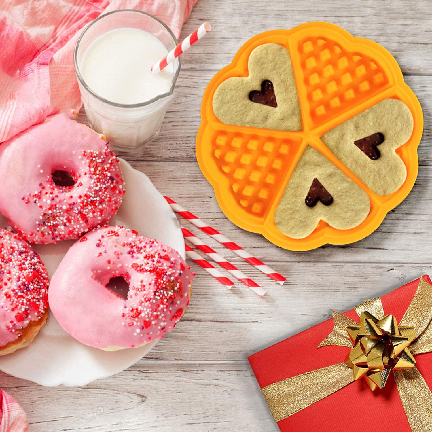 Backbegeisterte, aufgepasst! Diese JSJMOFA Donut Backform hat satte 12 Mulden und bringt 4 verschiedene Formen mit: rund, blumig, spiralförmig und herzförmig. Jede Mulde hat 6,8cm Durchmesser - perfekt für süße Mini-Donuts oder Cupcakes. Hergestellt aus hochwertigem Kohlenstoffstahl, der bis 230°C hitzebeständig ist und super stabil bleibt. Die Antihaftbeschichtung sorgt dafür, dass deine Kreationen einfach aus der Form gleiten und sich super leicht reinigen lassen (spülmaschinengeeignet!). Die Form misst 35x26,4x3cm und passt in die meisten Backöfen. Mit 12 Mulden kannst du auf einmal backen - ideal für Familien, Feiern oder wenn du einfach viel backen willst! Aber nicht nur für Donuts: Mach damit Cupcakes, Brownies, Eiermuffins und andere Leckereien. Perfekt fürs tägliche Kochen, Familientreffen, Weihnachtsfeiern oder wenn mal wieder Besuch kommt. Viel Spaß beim Backen!