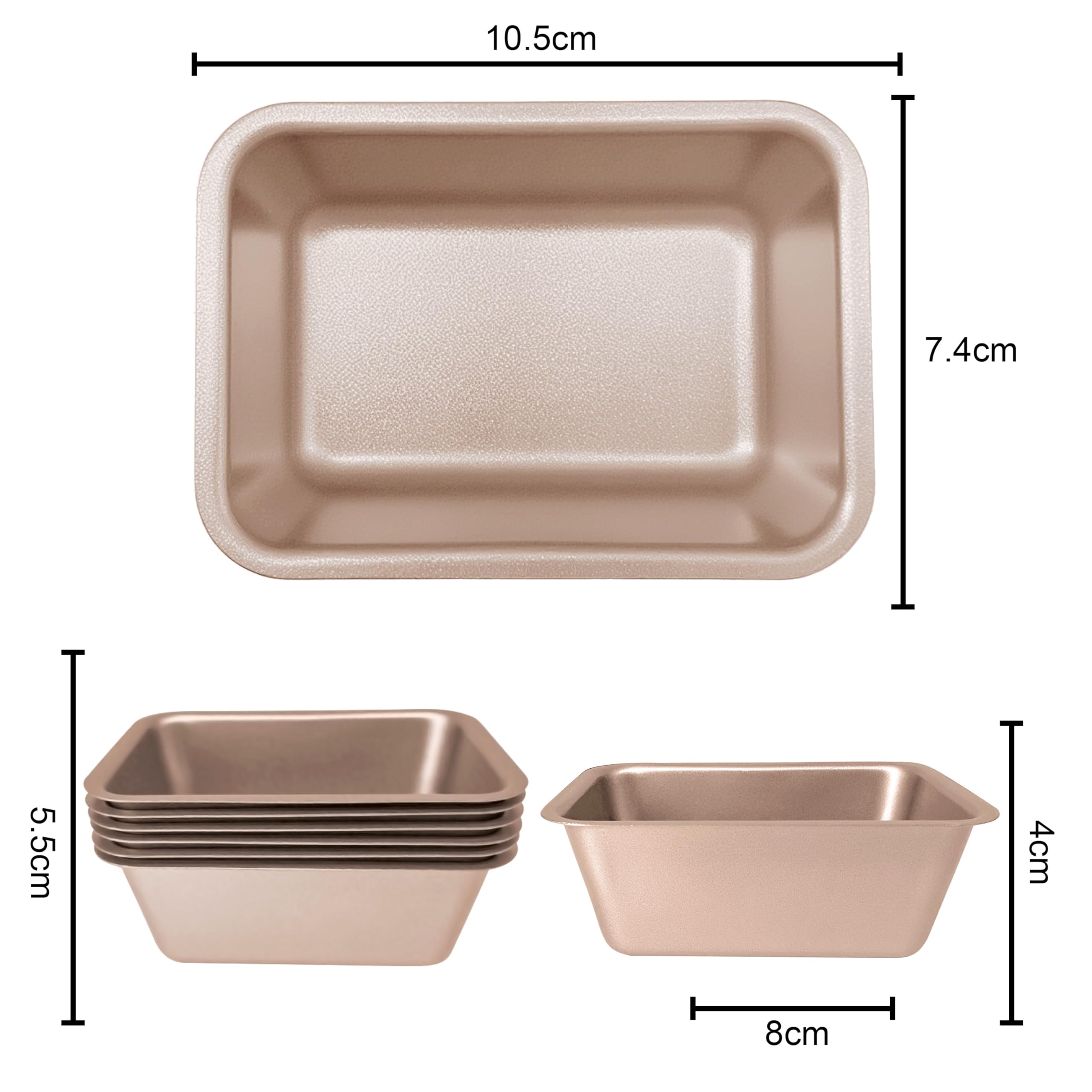 OGIBRIDI Mini Backform Set 6-tlg - Rechteckige Brotformen 10,3x7,2x4cm Champagnergold